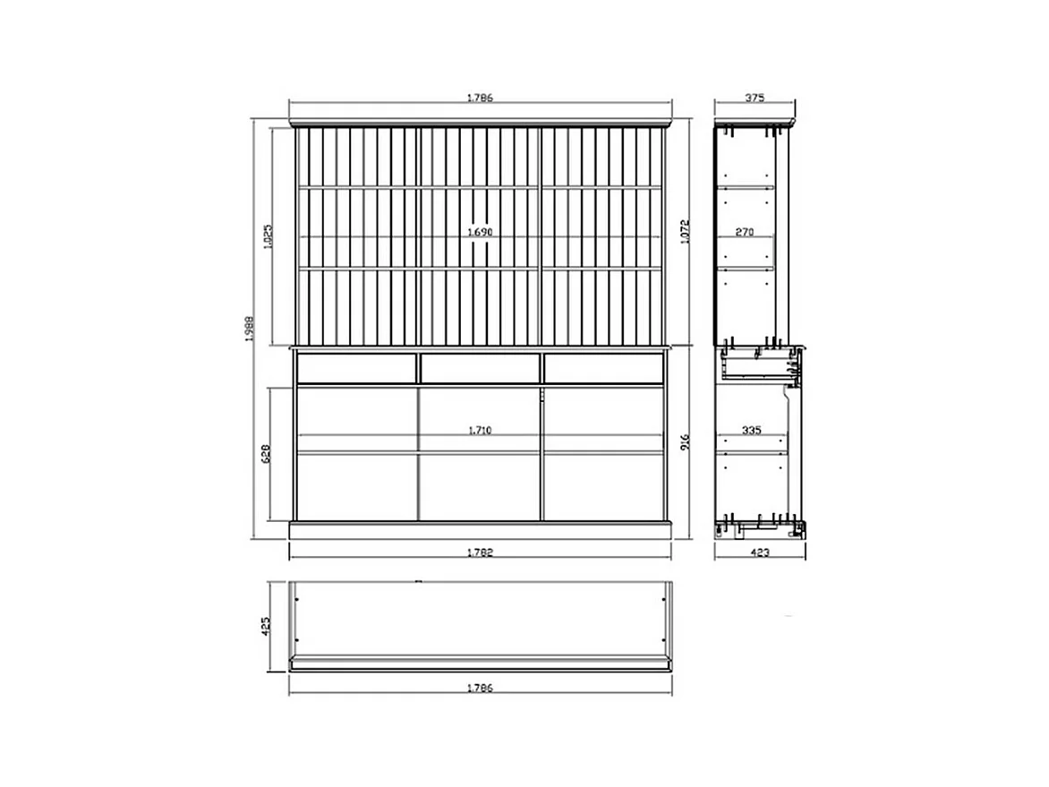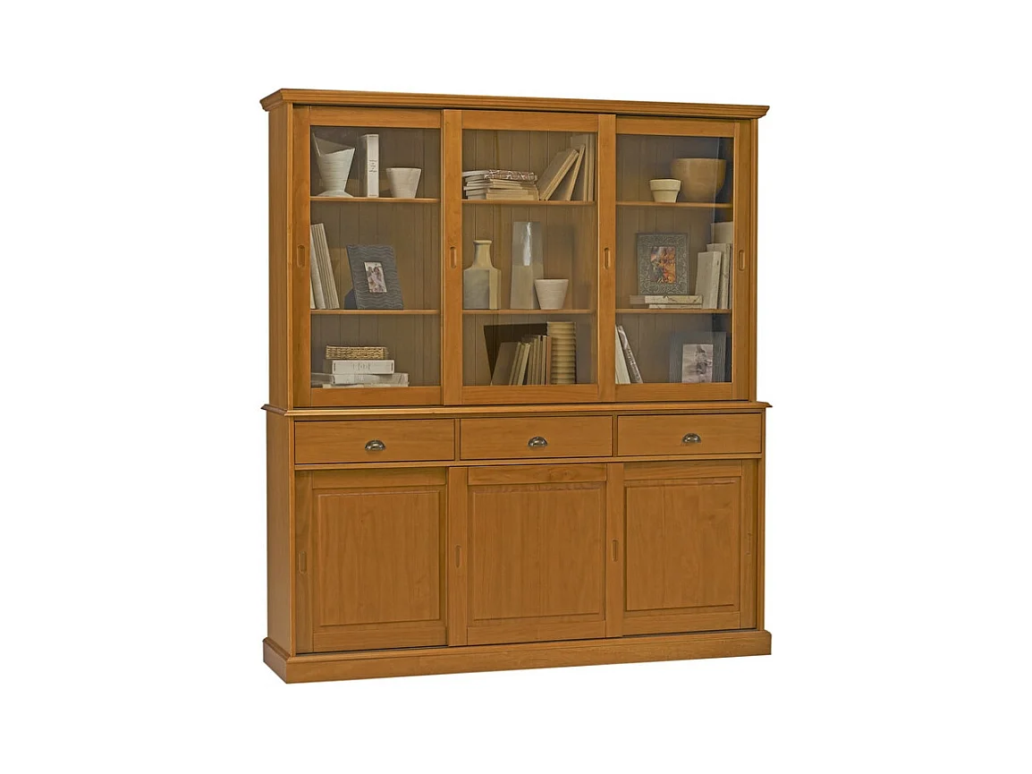 Vaisselier Pin Miel 6 Portes Coulissantes 10 Niches L 178.6 H 199 P 42.3 cm