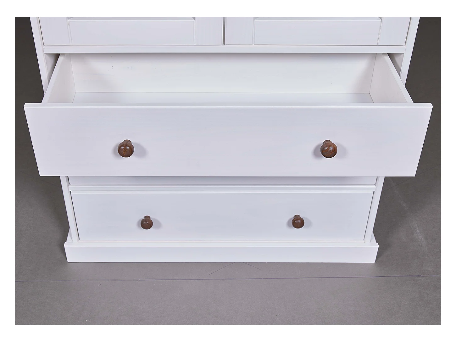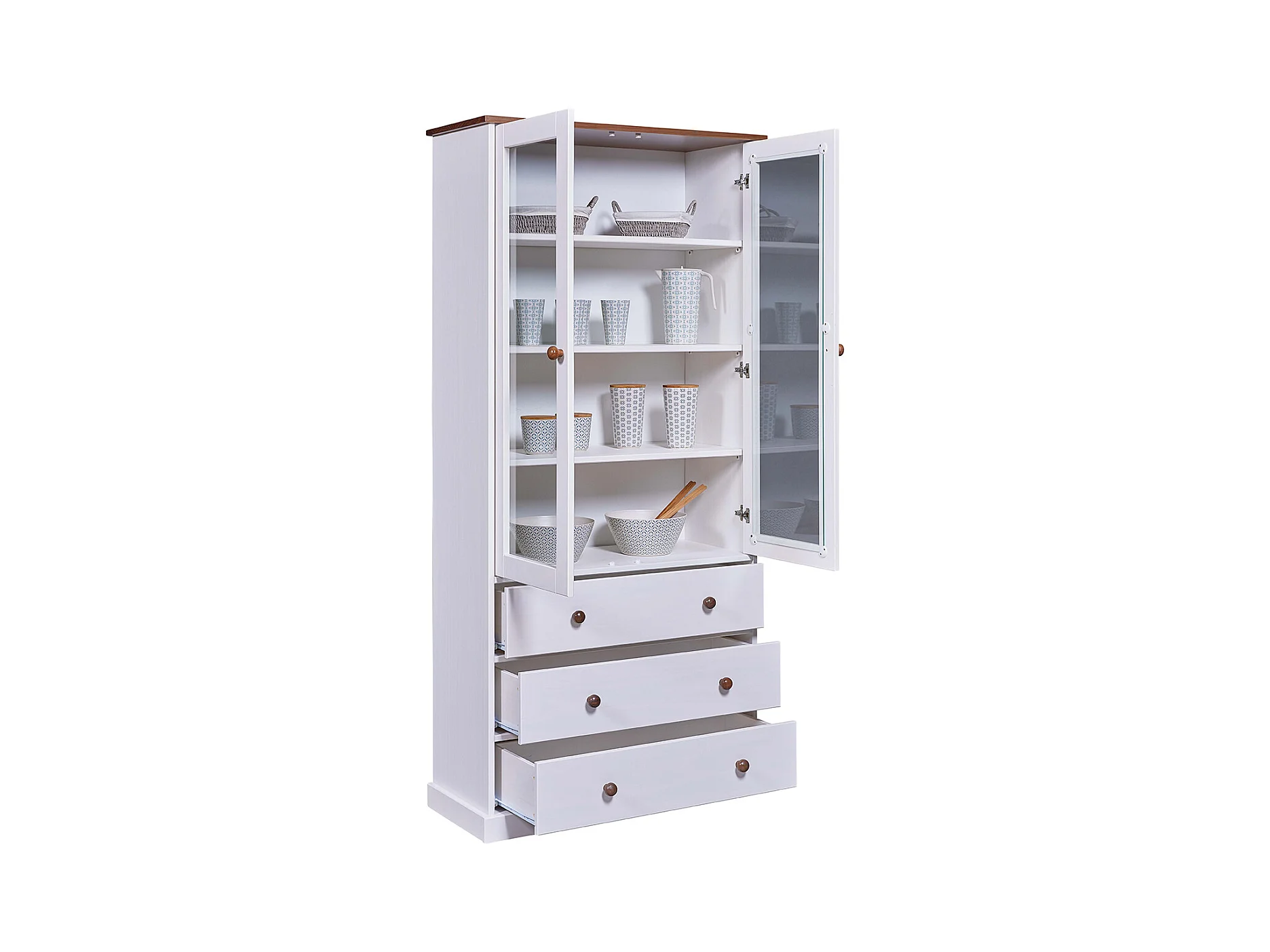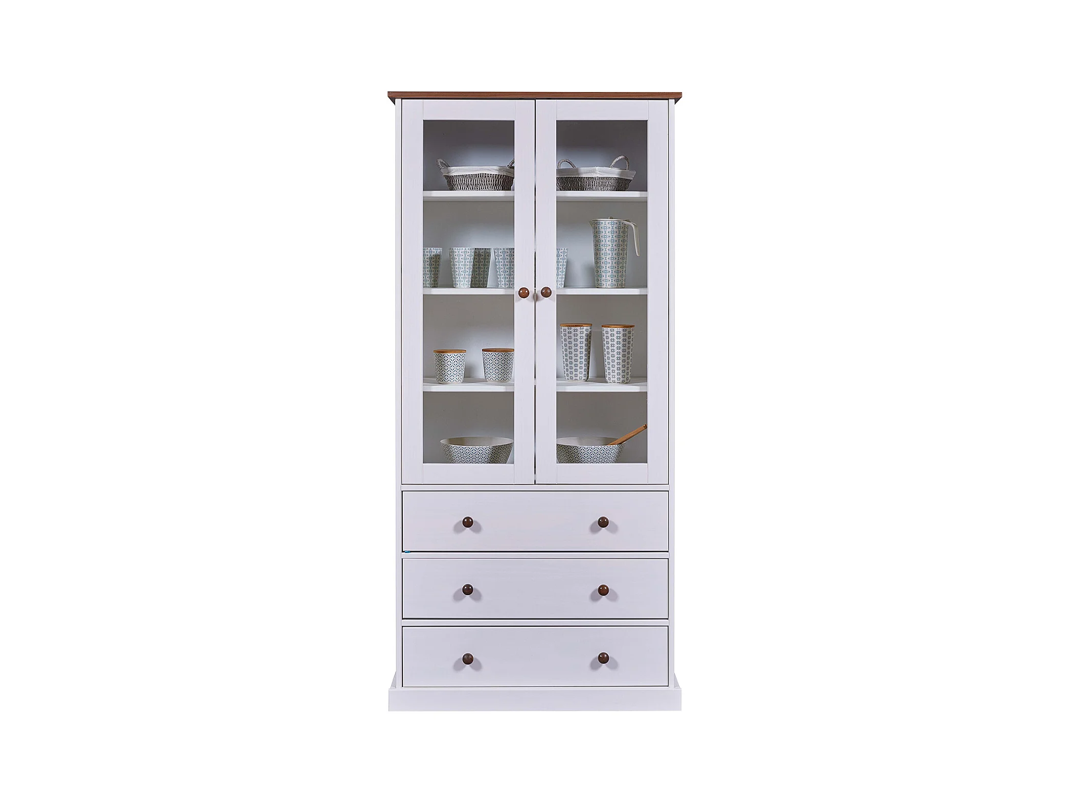 Vaisselier vitrine en pin massif vernis blanc/sépia - Longueur 90 x Profondeur 38 x Hauteur 190 cm