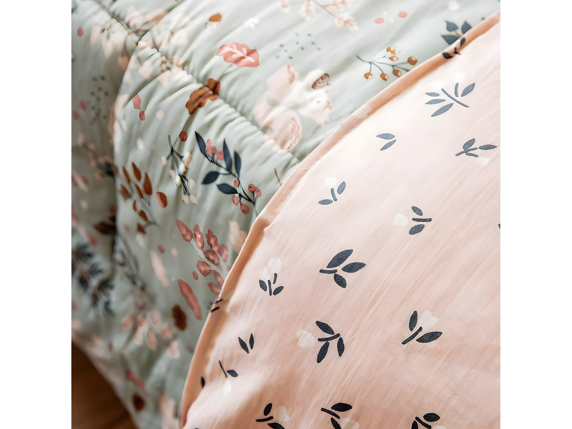MEGAN - Couette Imprimée Fleurs 260 x 240 cm + 2 Taies d'oreiller 60x60 cm