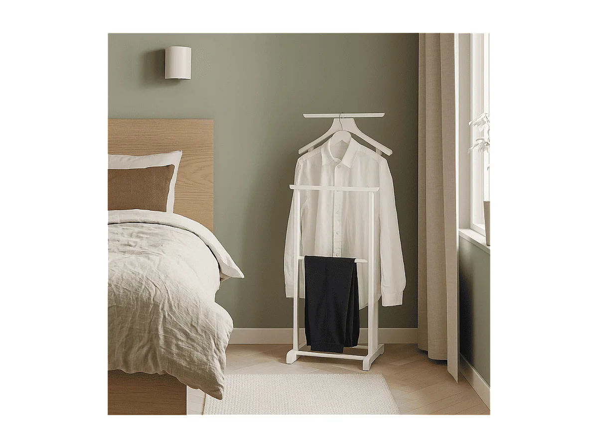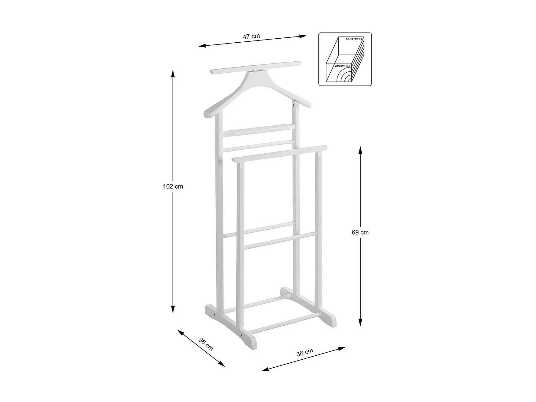 Valet de nuit - H108cm x L46cm x P44cm - hêtre massif blanc - Stilizzato