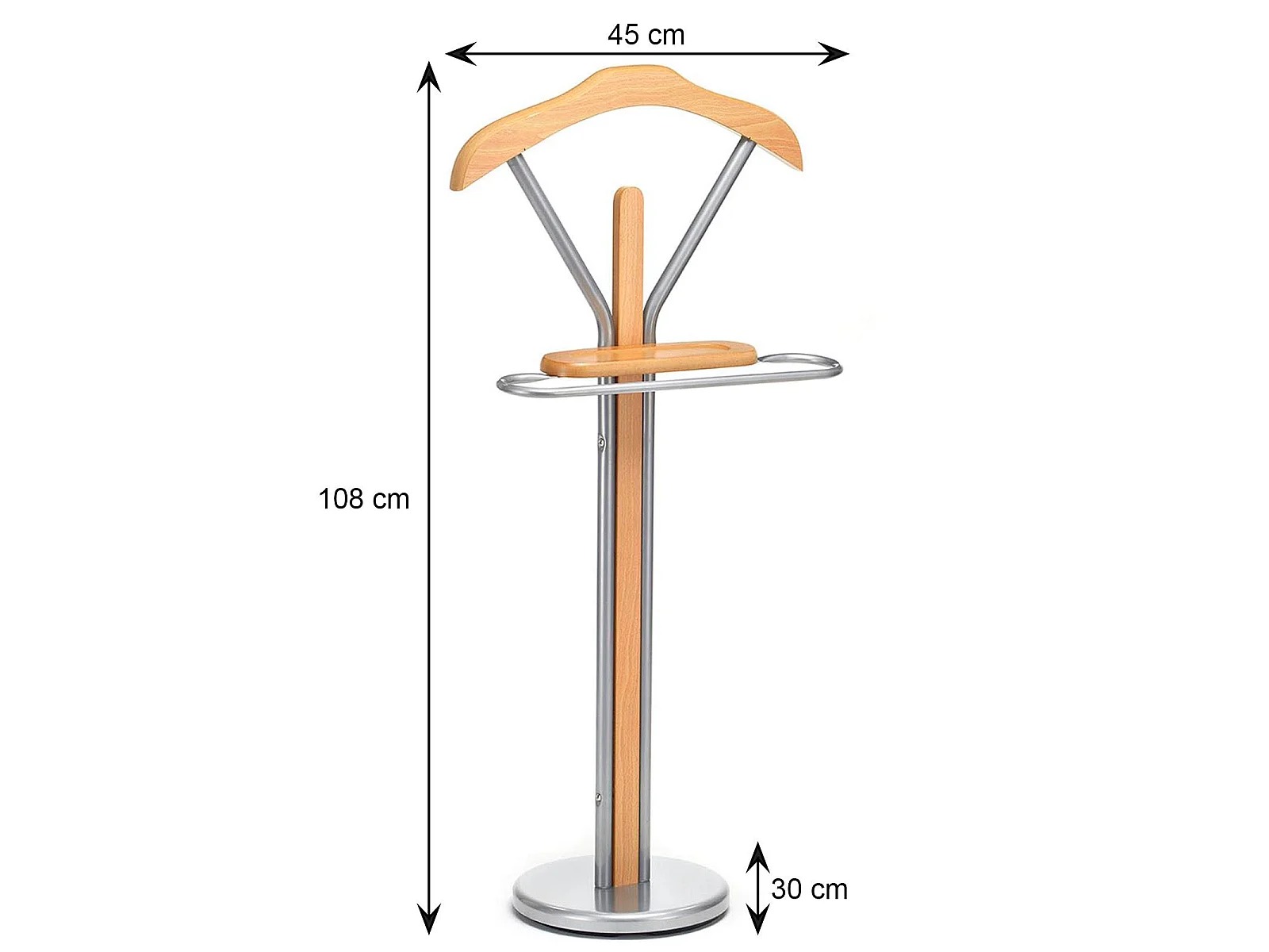 Valet de chambre FABIO chevalet de nuit portant pour vêtements, structure en métal laqué et finition en MDF couleur hêtre