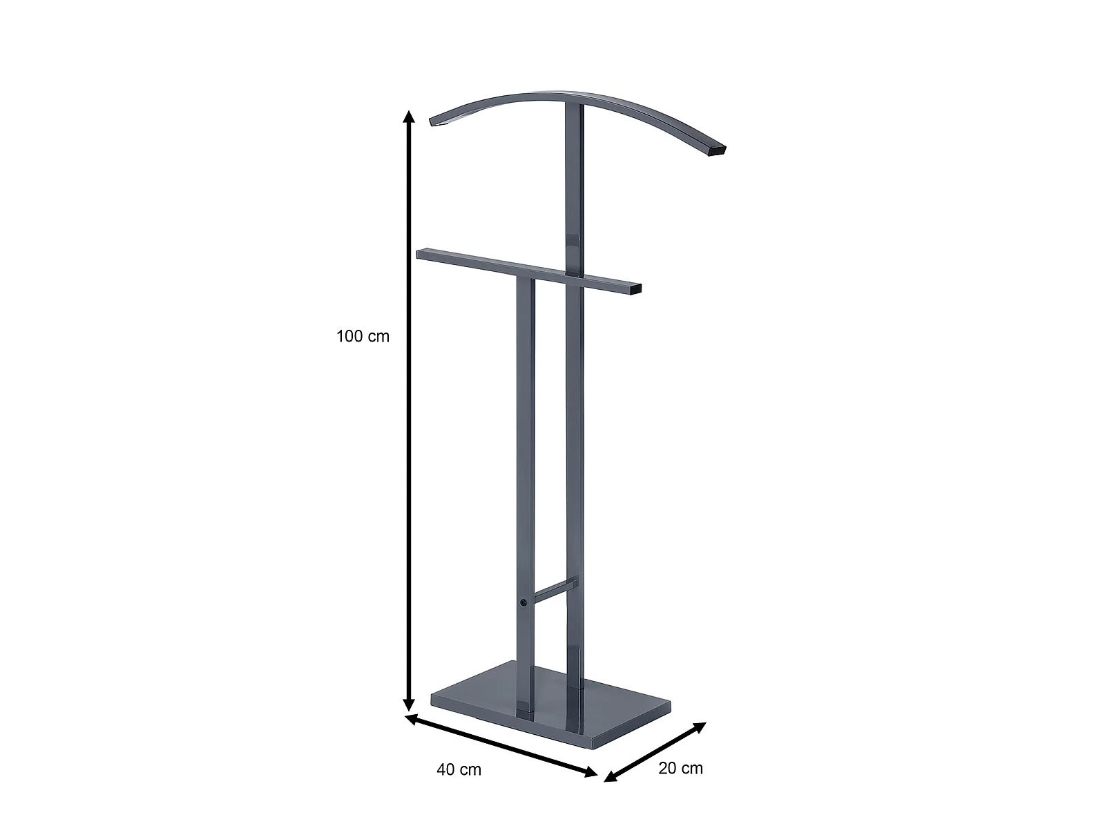 Valet de chambre SCOTT chevalet de nuit avec cintre et portant pour vêtements, socle rectangulaire et tubes en métal laqué gris