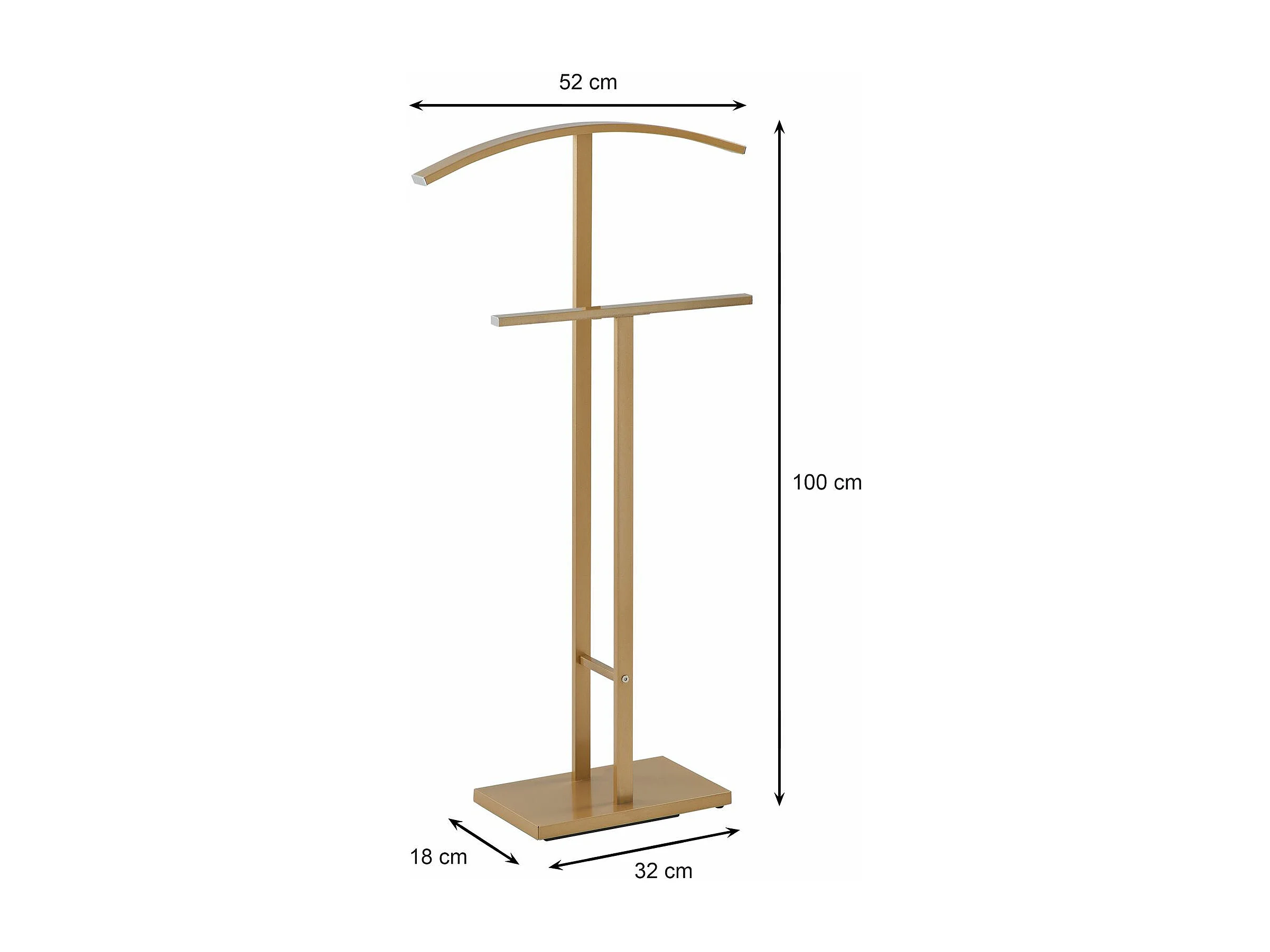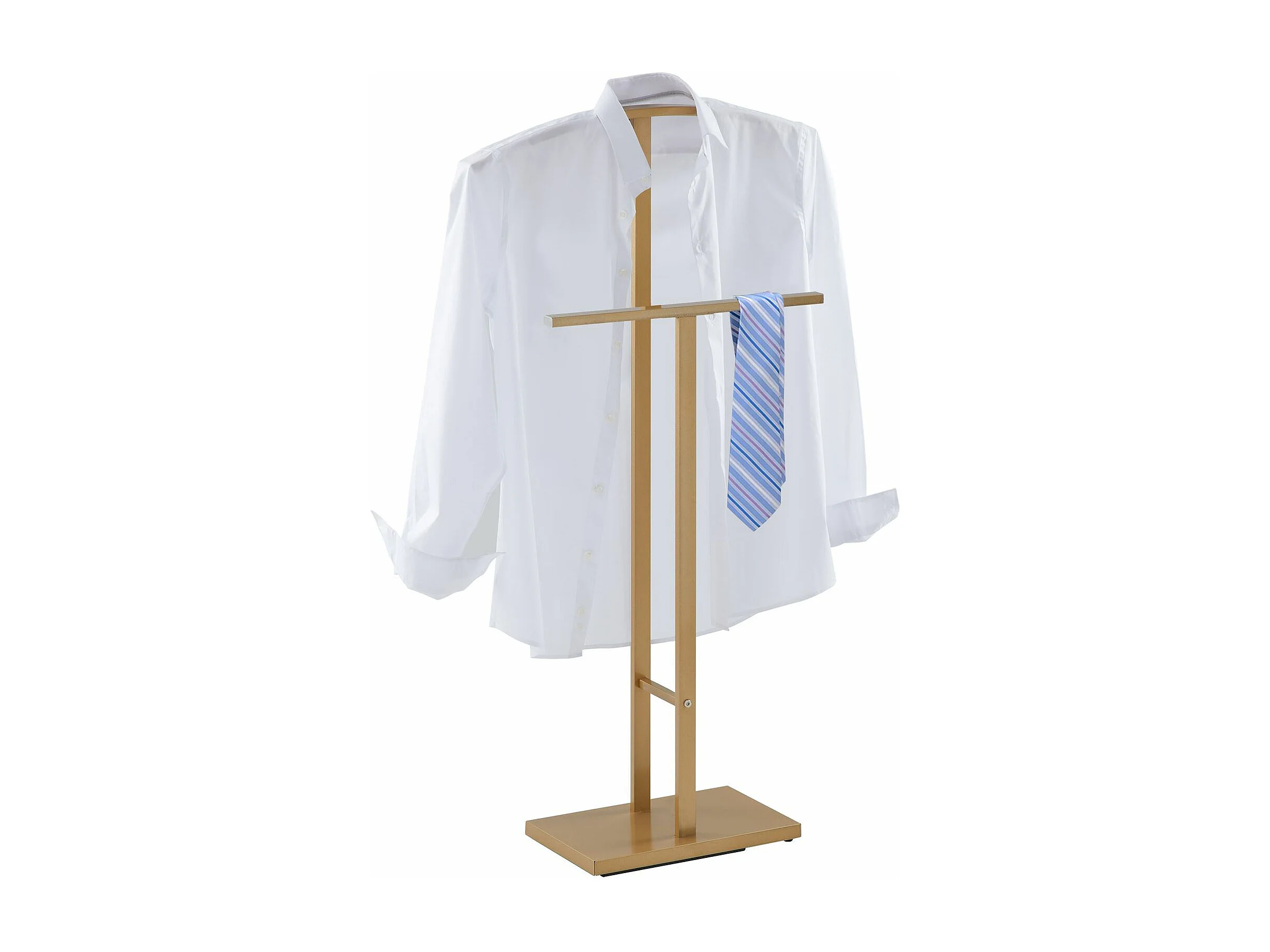 Valet de chambre SCOTT chevalet de nuit avec cintre et portant pour vêtements, socle rectangulaire et tubes en métal laqué or