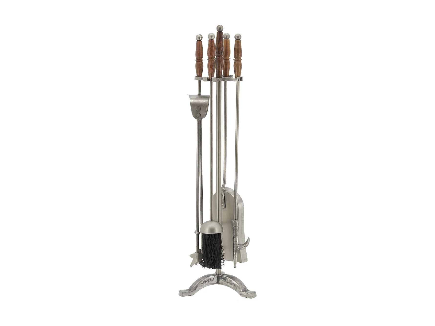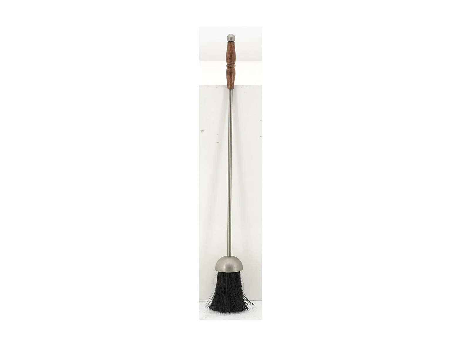 Pelle et balayette pour cheminée en étain et bois (Lot de 2)
