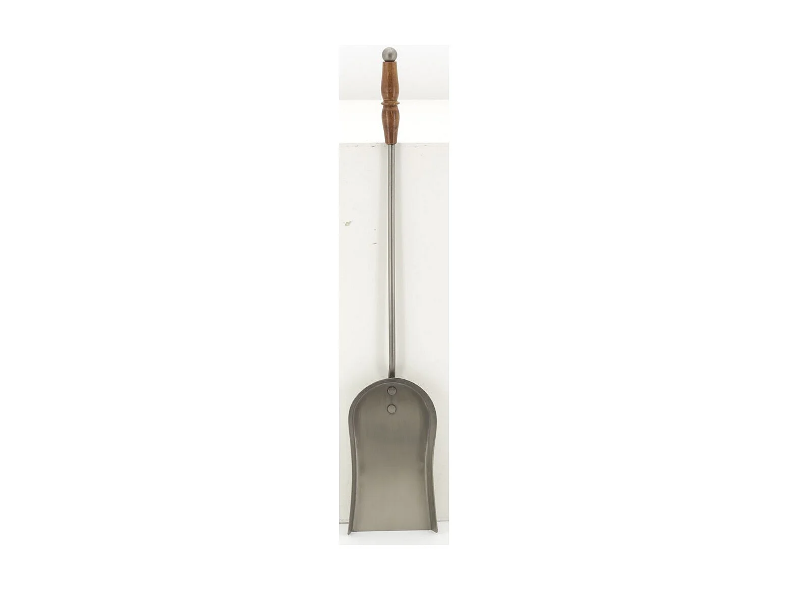 Pelle à cendre, charbon pour cheminée, Ramasse poussière en métal avec poignée en Bois couleur Gris - 23,5 x 20 cm