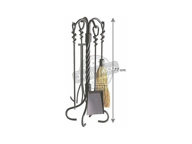 Valet de cheminée en fer forgé torsades 4 accessoires