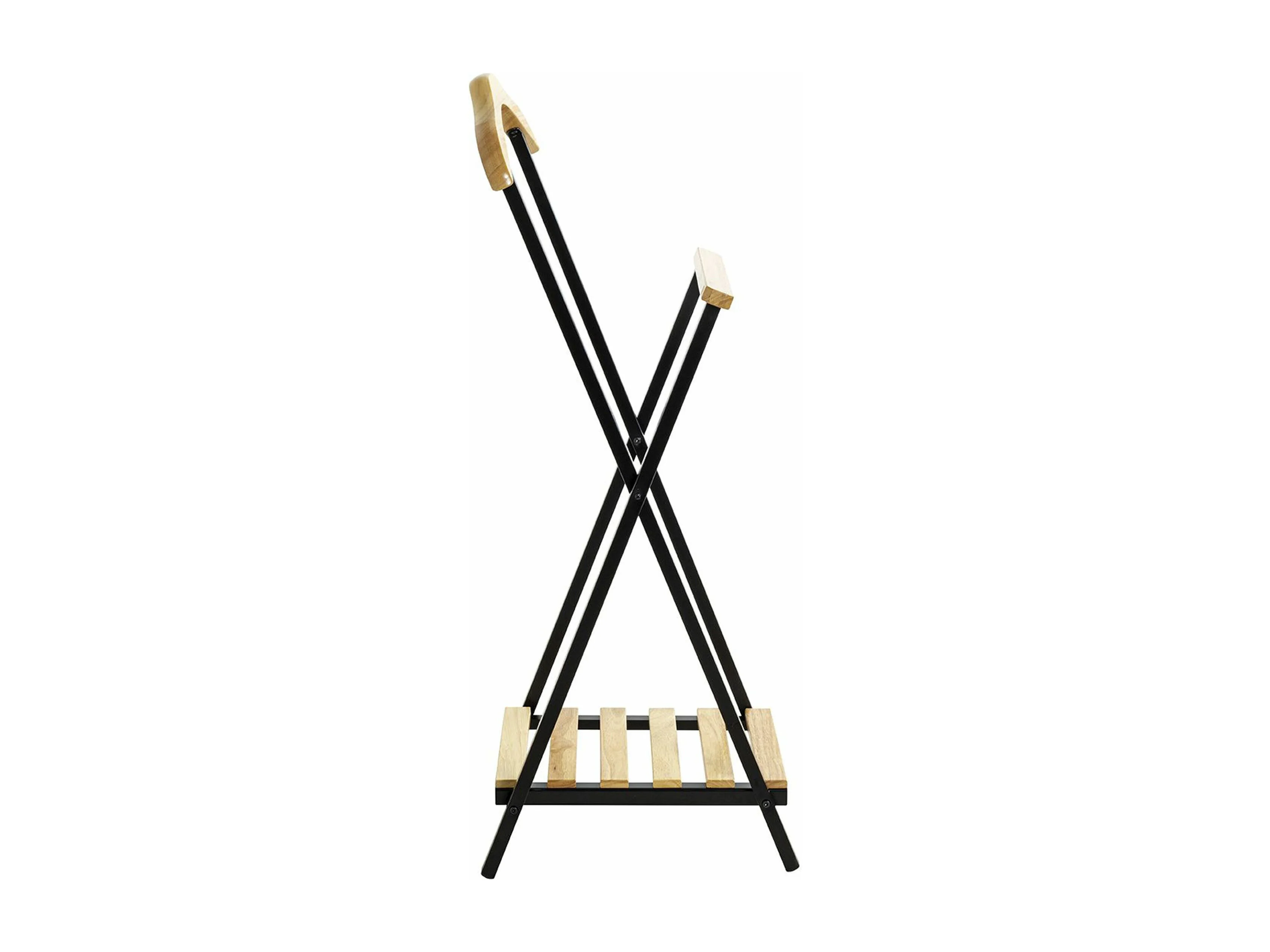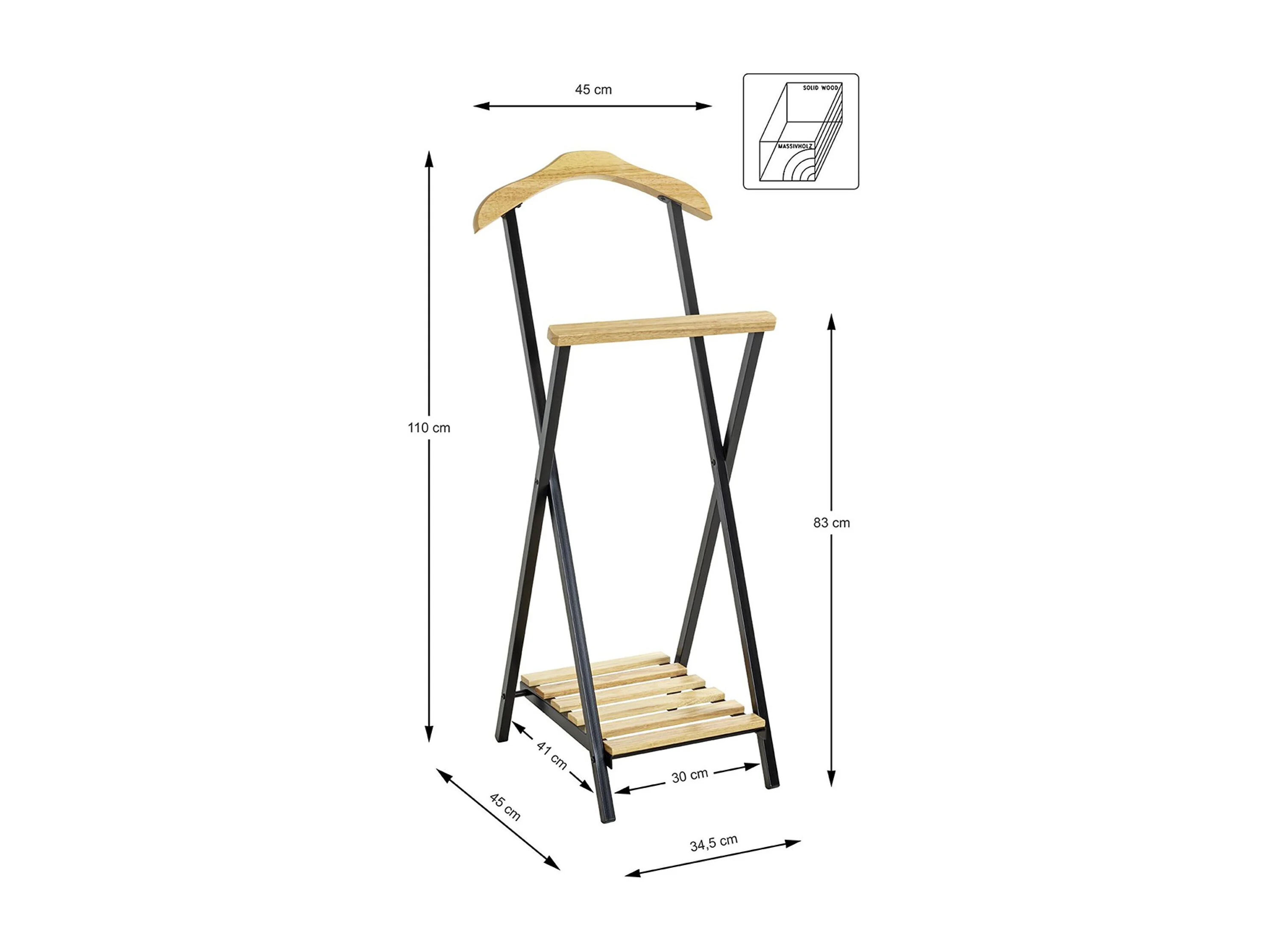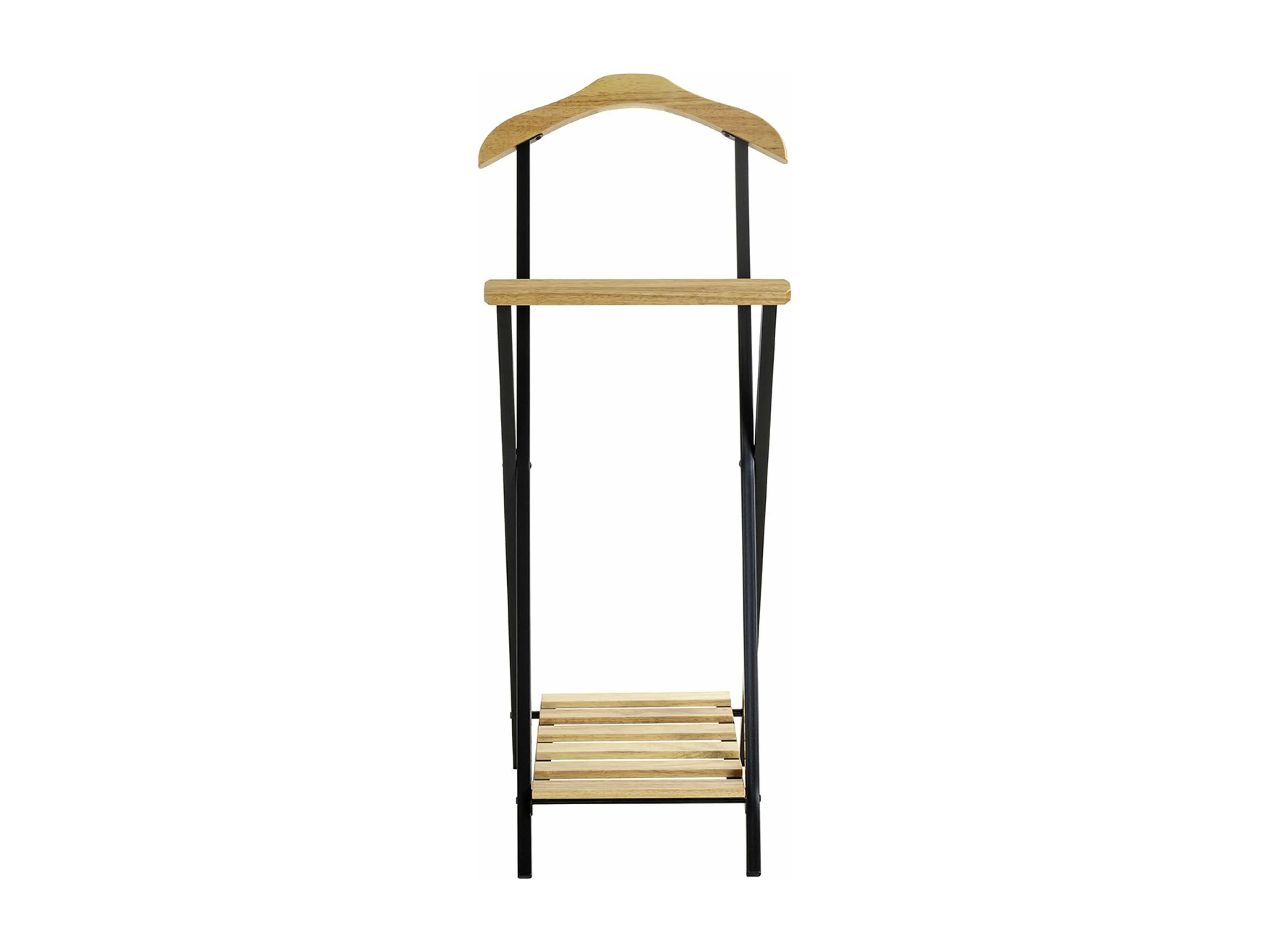 Valet de nuit , valet de chambre en bois massif coloris naturel et métal noir -longueur 45 x profondeur 45 x hauteur 110 cm