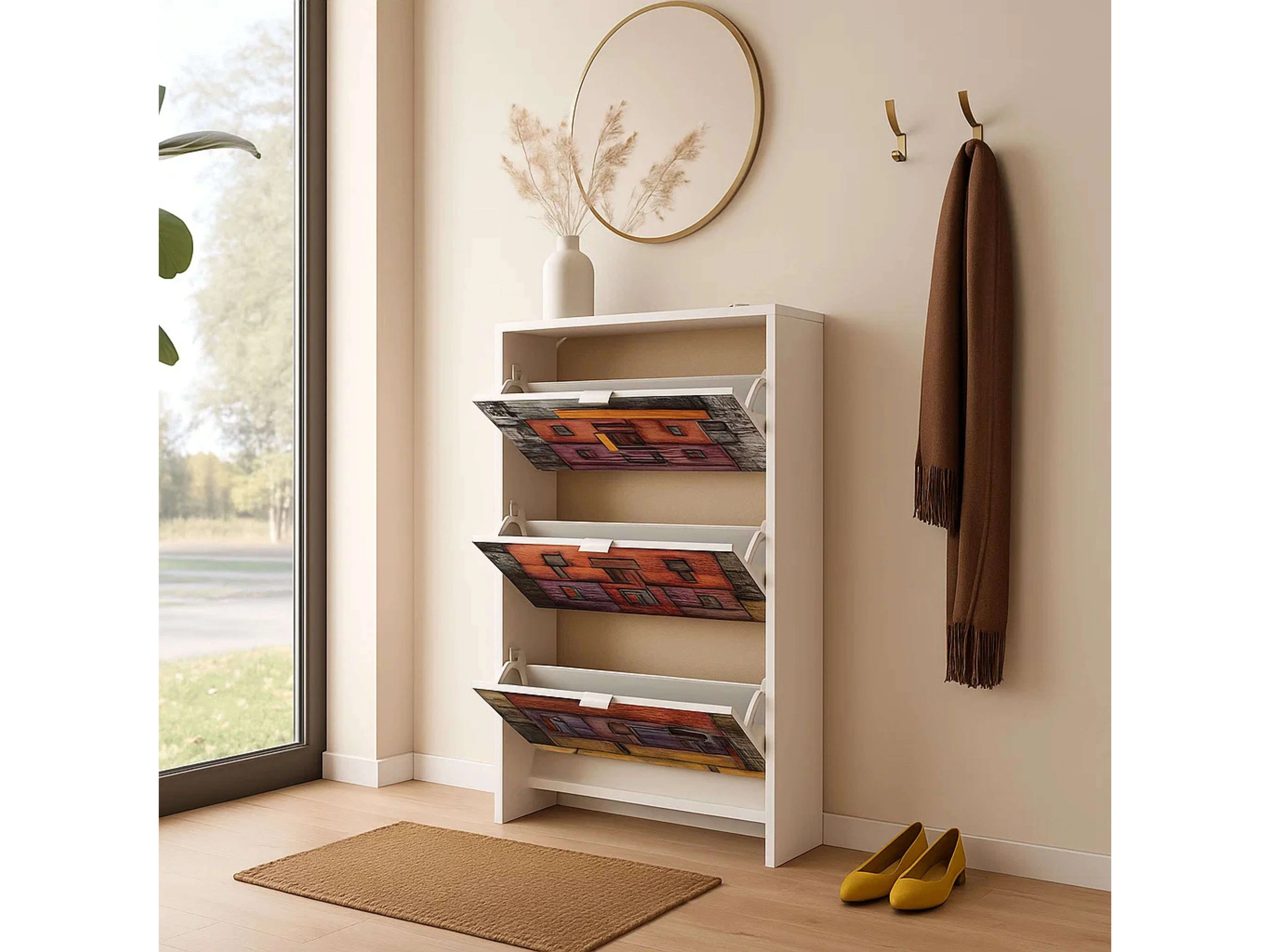 Valise à chaussures 3 portes avec imprimé blanc moderne 117 x 60 x 24 cm