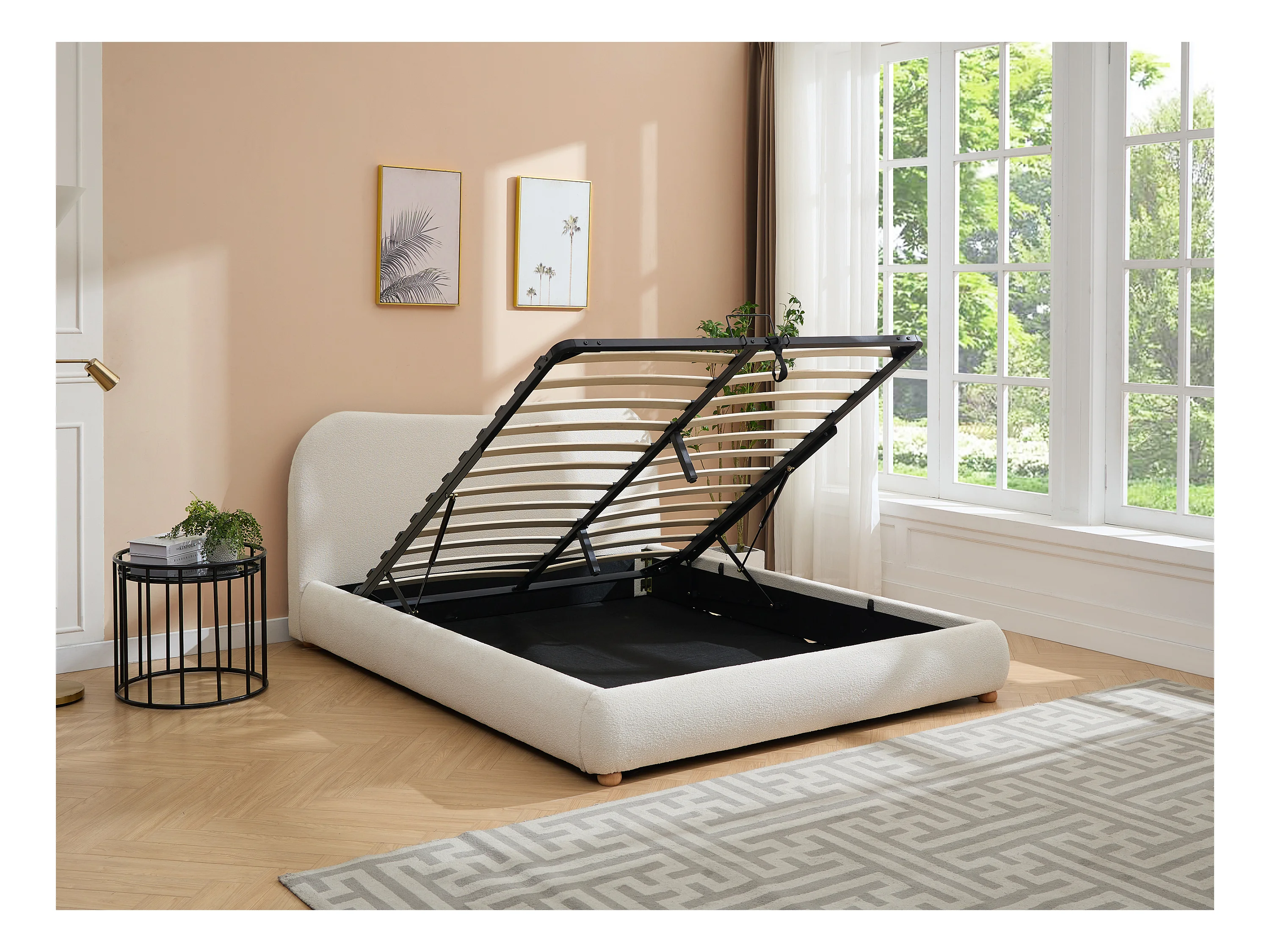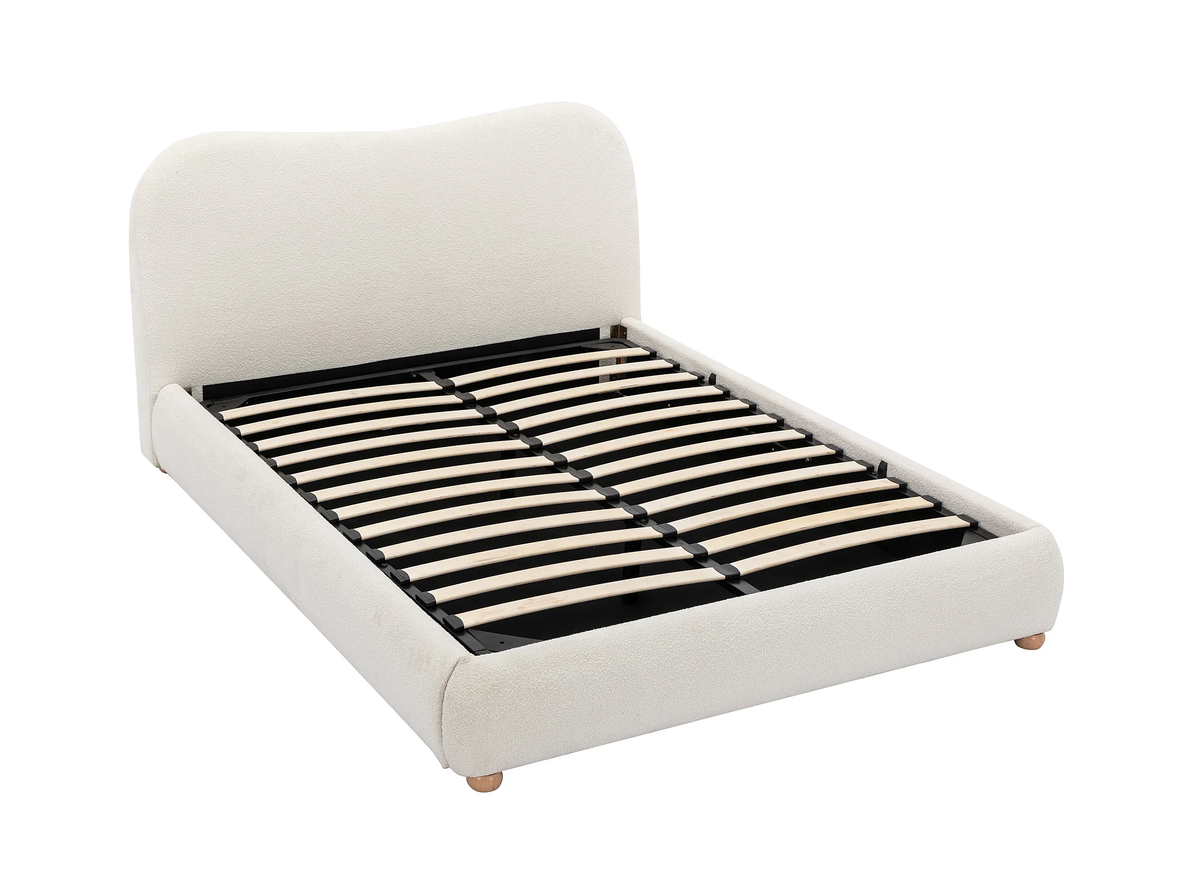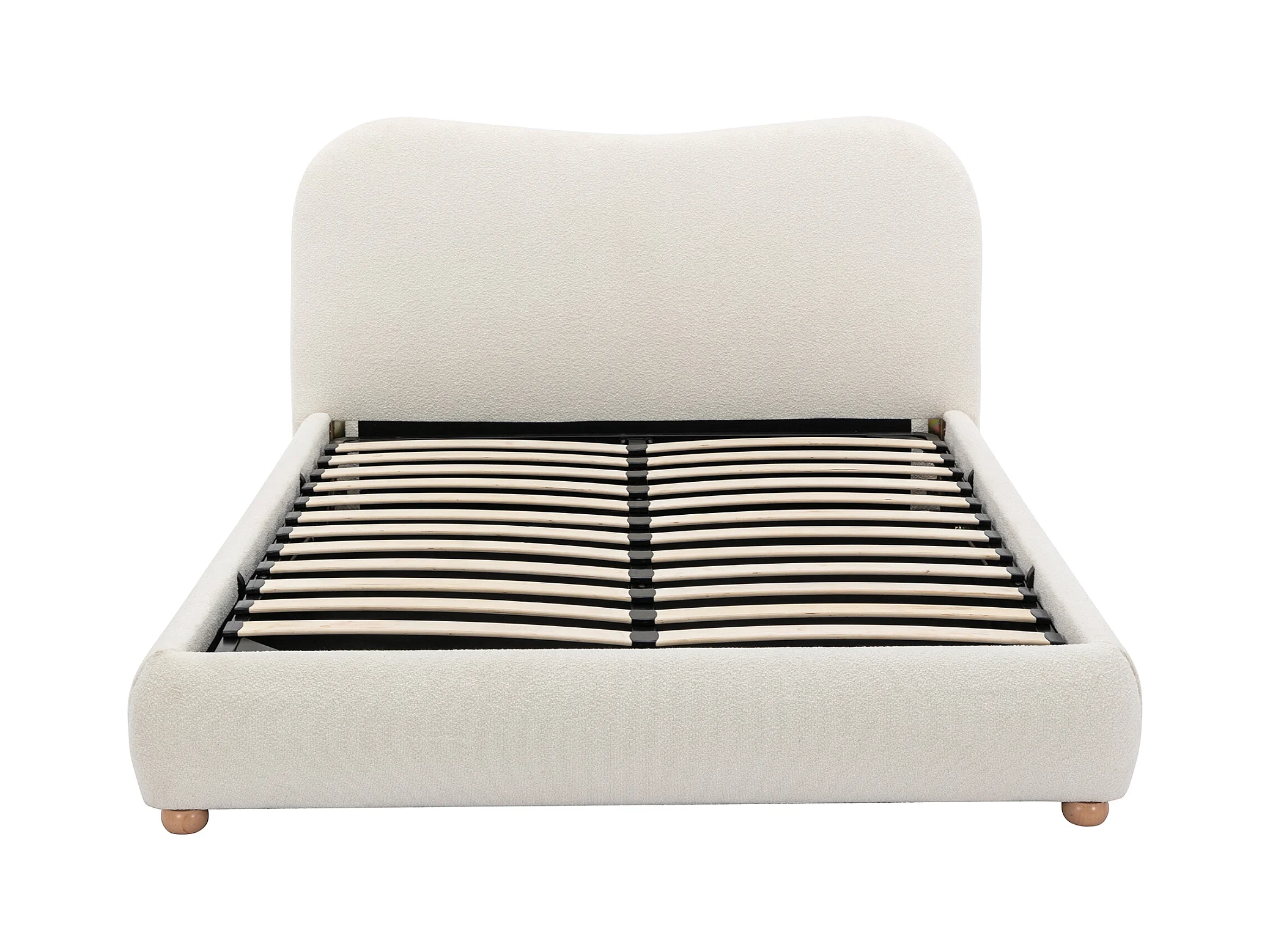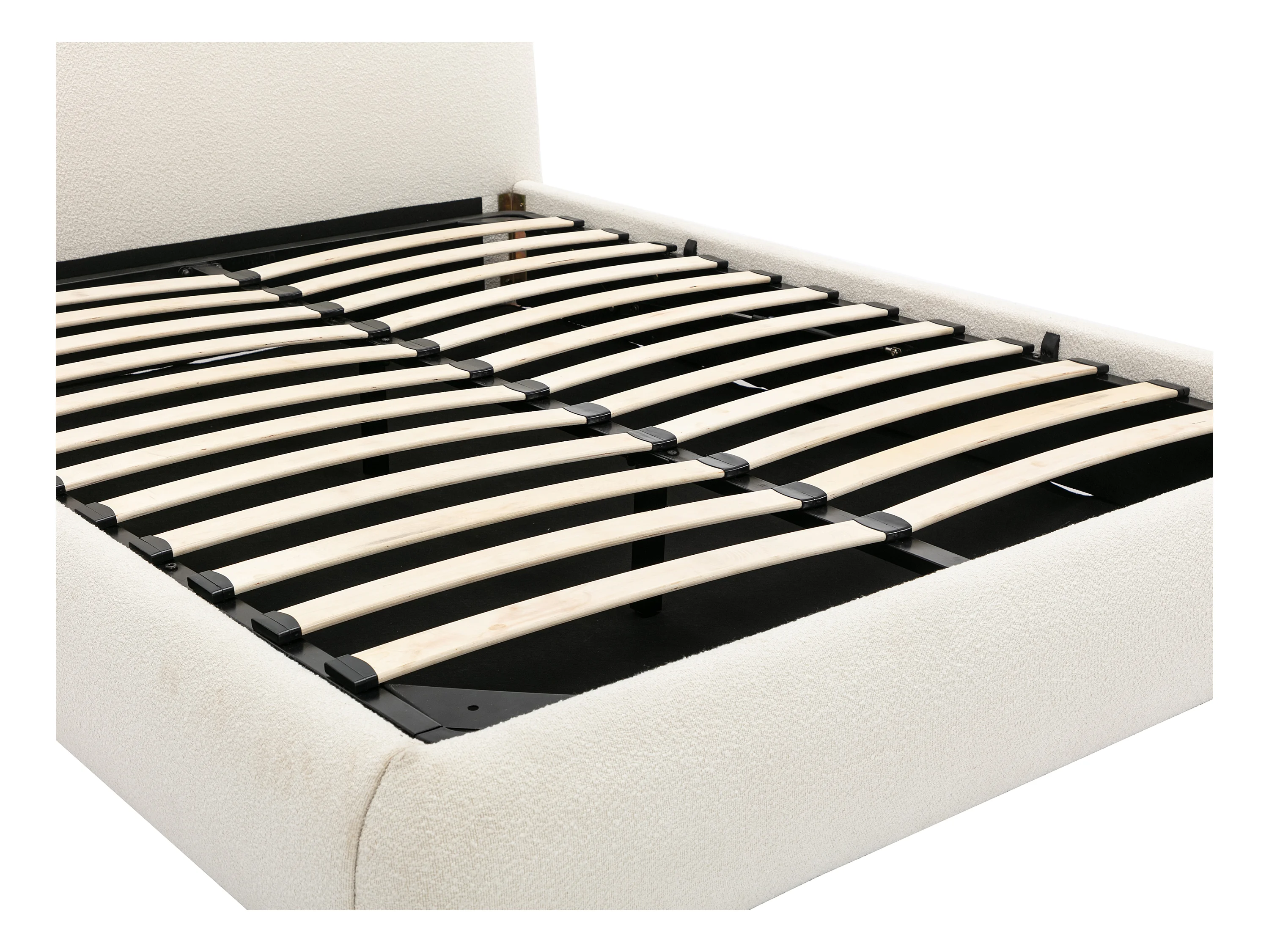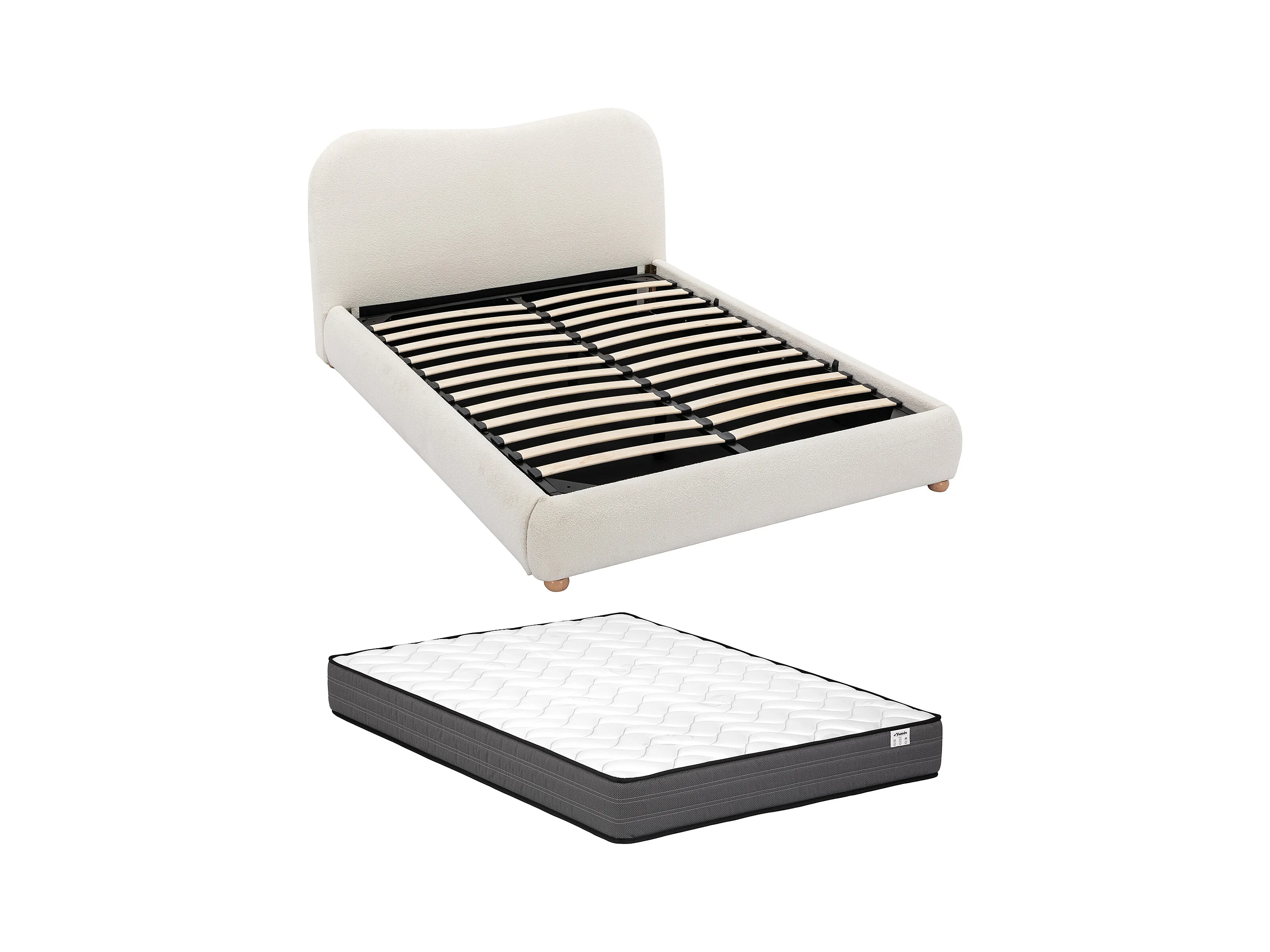 Lit coffre 180 x 200 cm - Tissu bouclette - Blanc + Matelas - VANARI