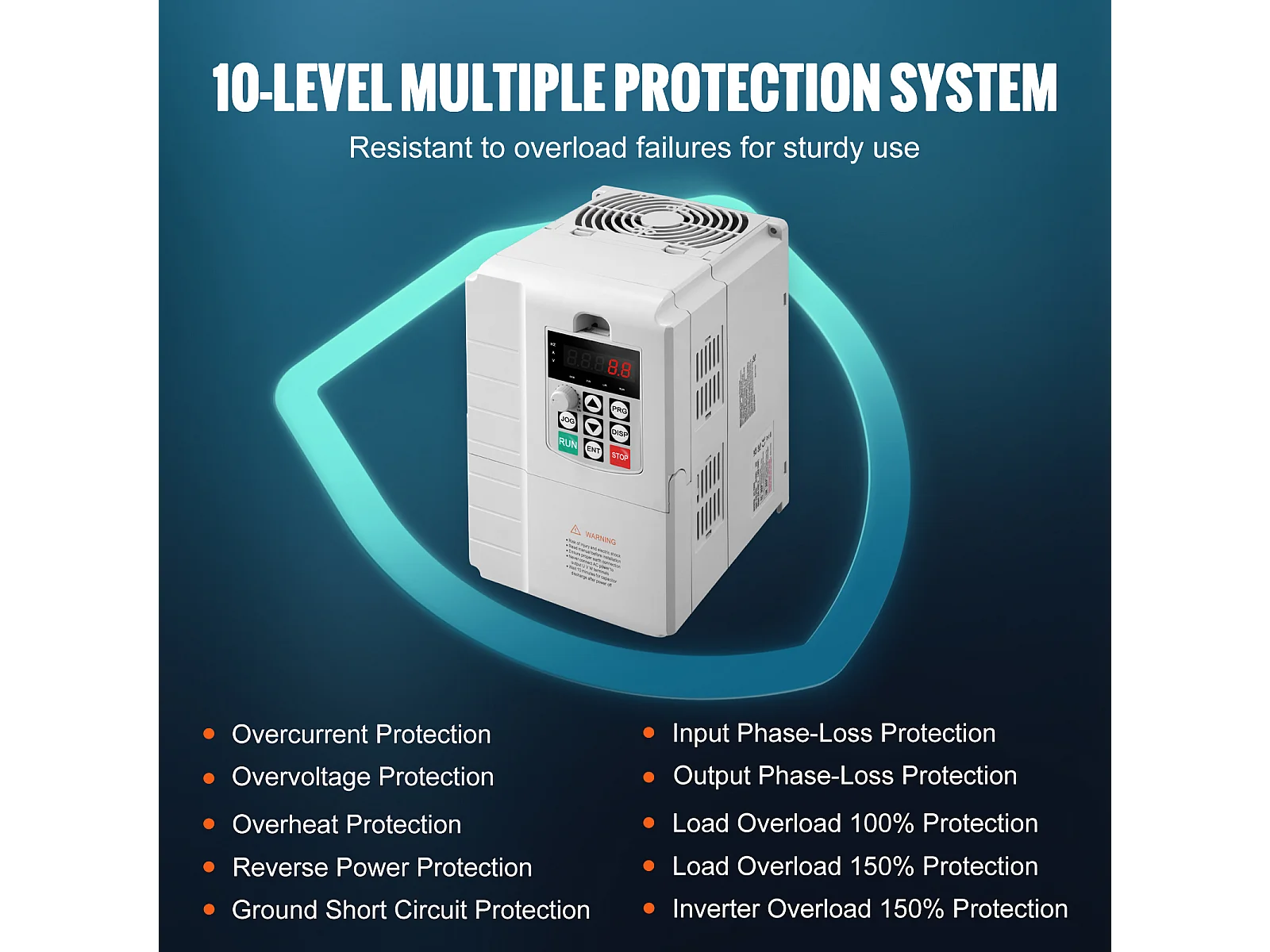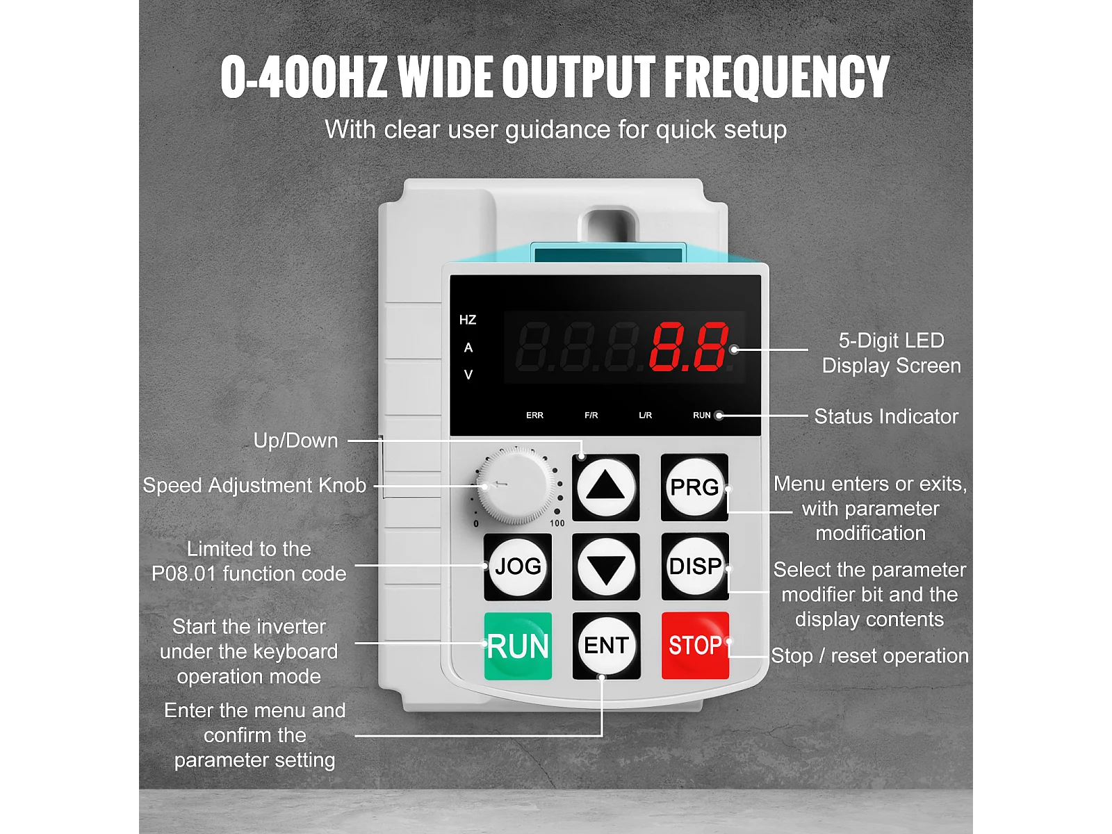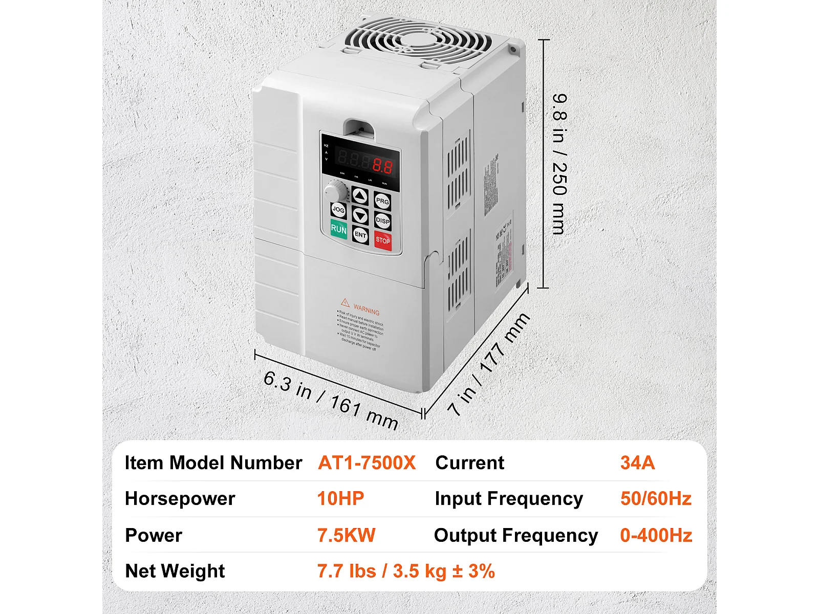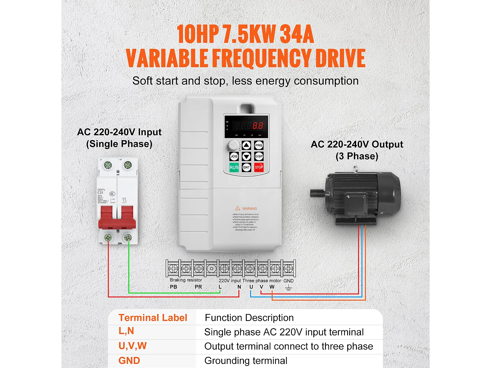 Variateur de Fréquence SucceBuy pour Contrôle de Vitesse de Moteur Triphasé VFD 7,5 kW 10 CV 34 A