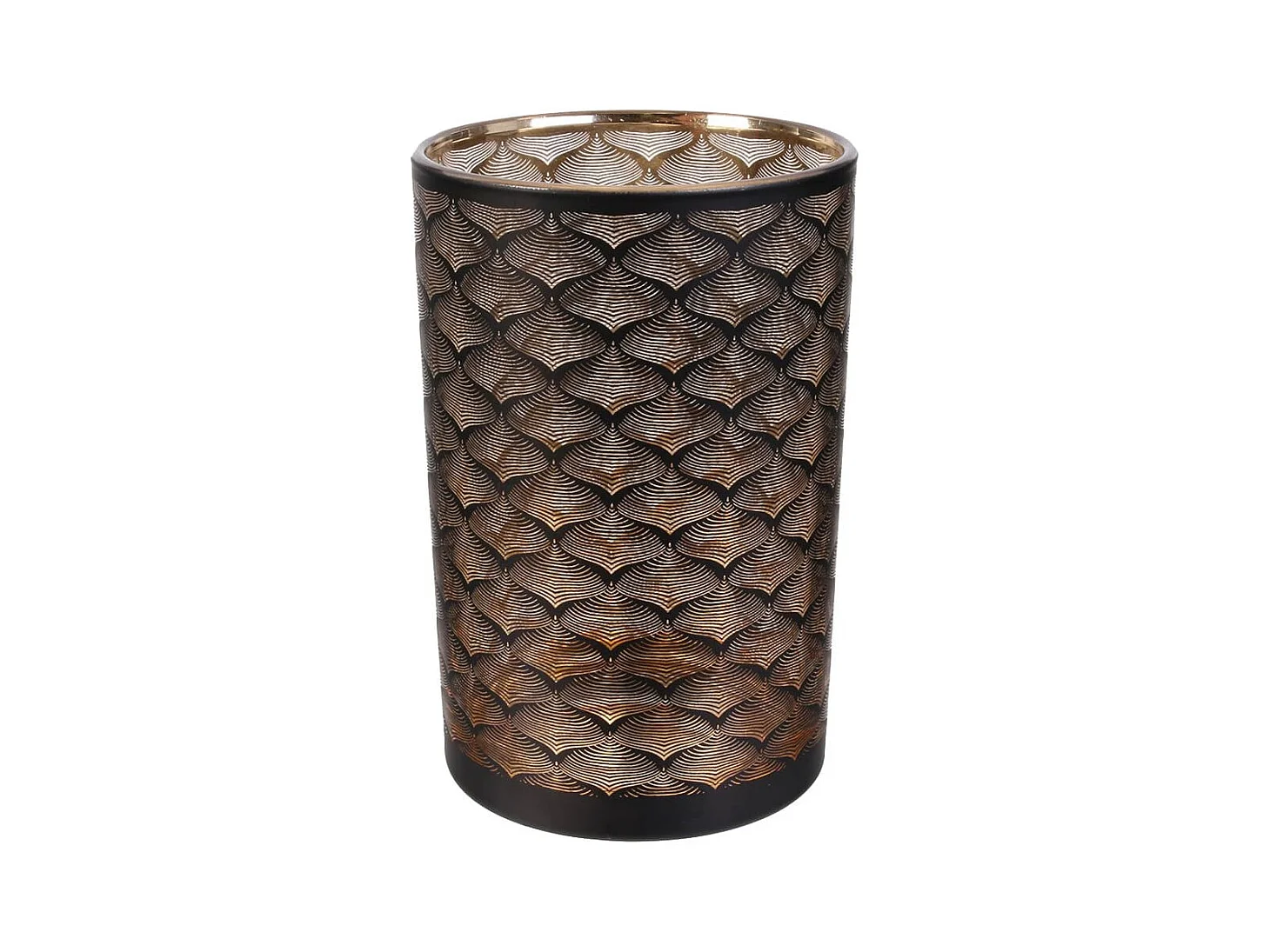 Vase Cylindrique en Verre Noir et Cuivre à Motifs - MAURY