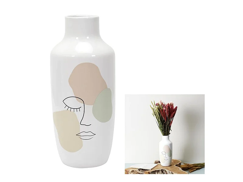 Vase Ceramique Poesie Formelle H29cm Blanc, Rose, Vert, Noir