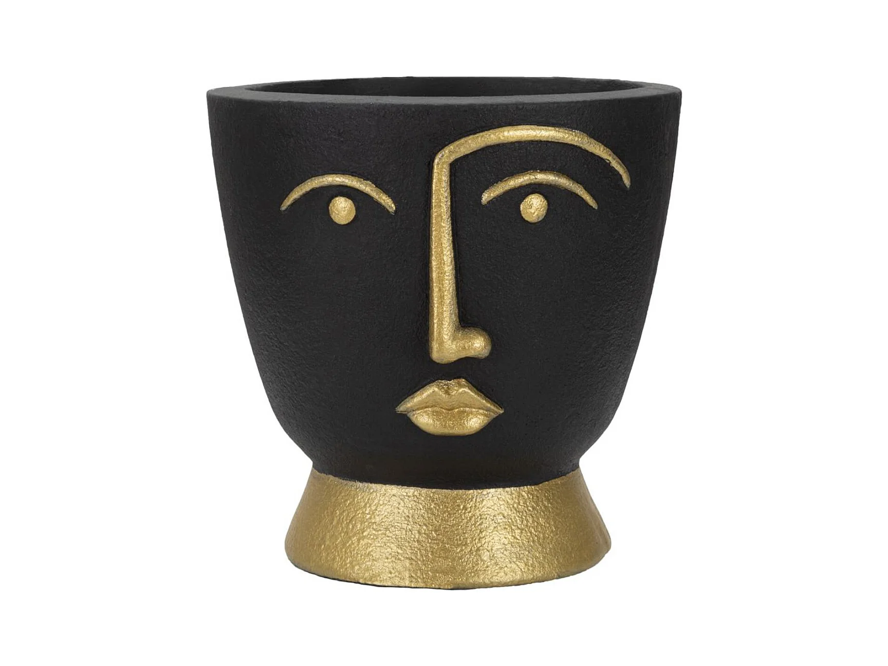Vase Design Visage "Tribal" 25cm Noir & Or
