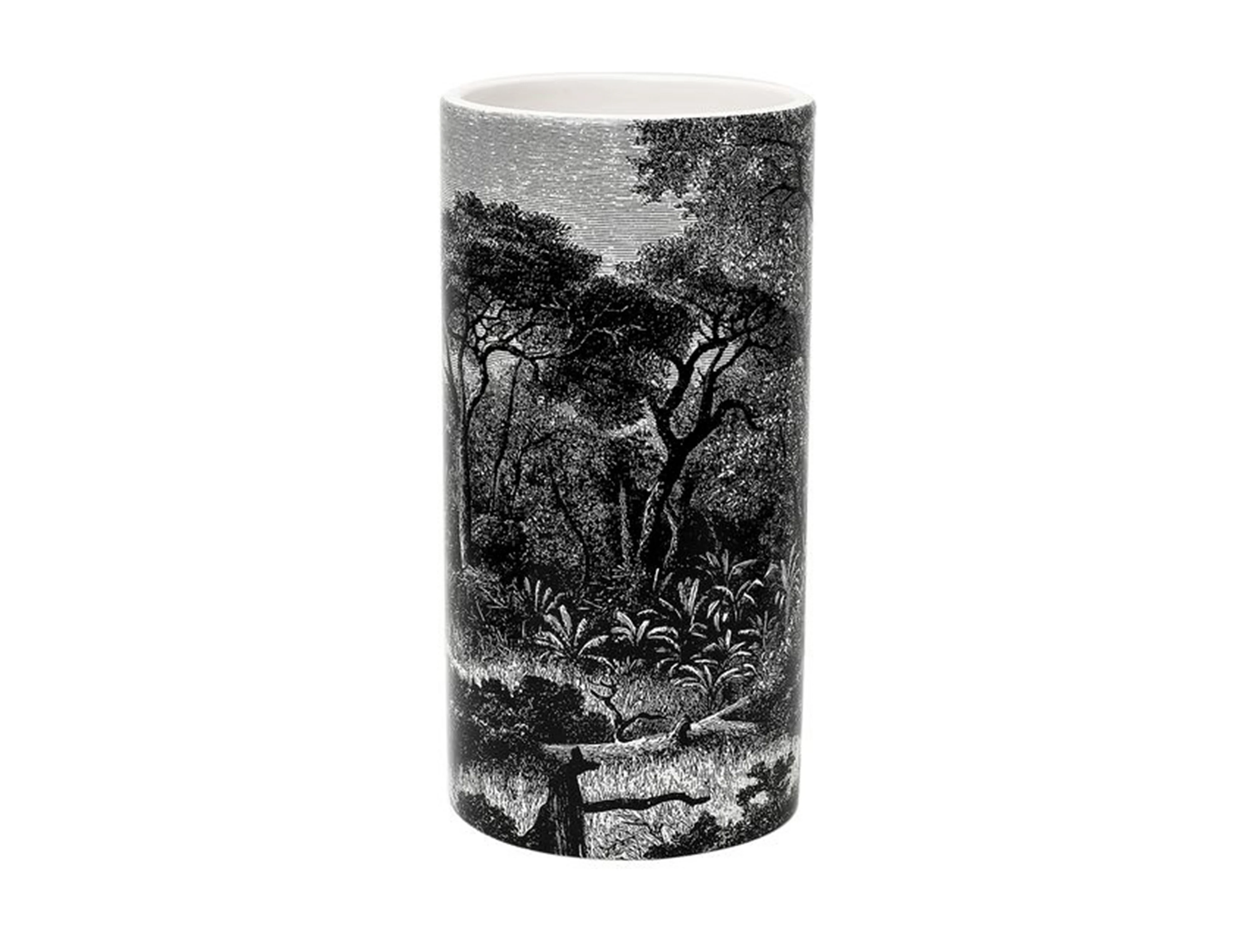 Vase Ceramique Cylindre Black Forest H25cm Noir, Blanc