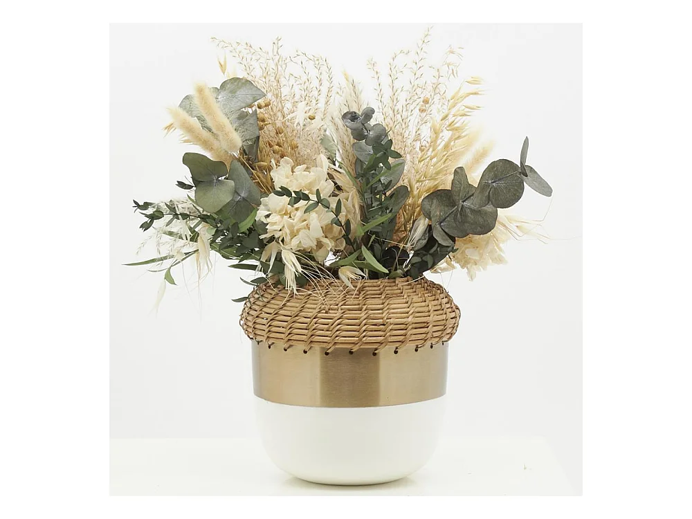 Objet décoratif Fleur en céramique blanche et dorée D 14.5 x H 6.3 cm