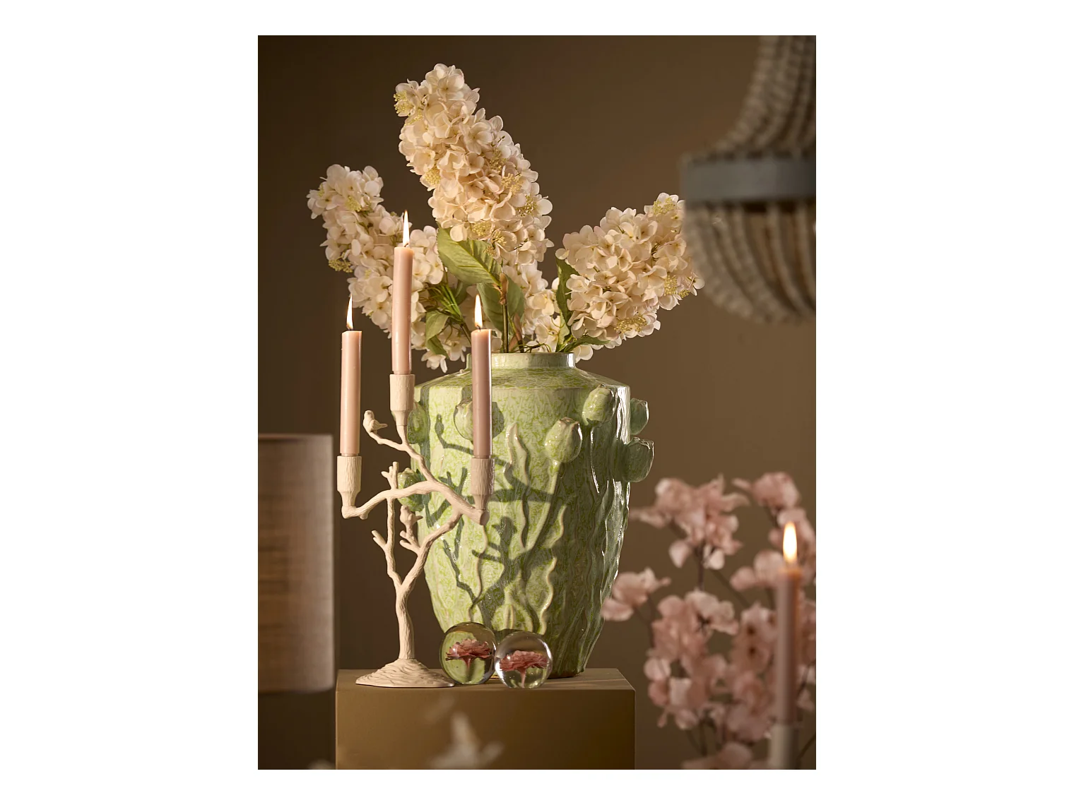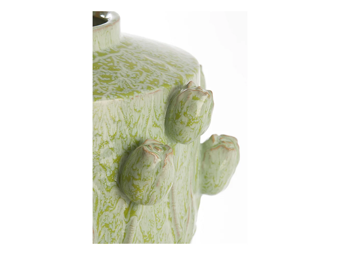 Vase Rond "Bord Céramique" 45cm Vert & Naturel