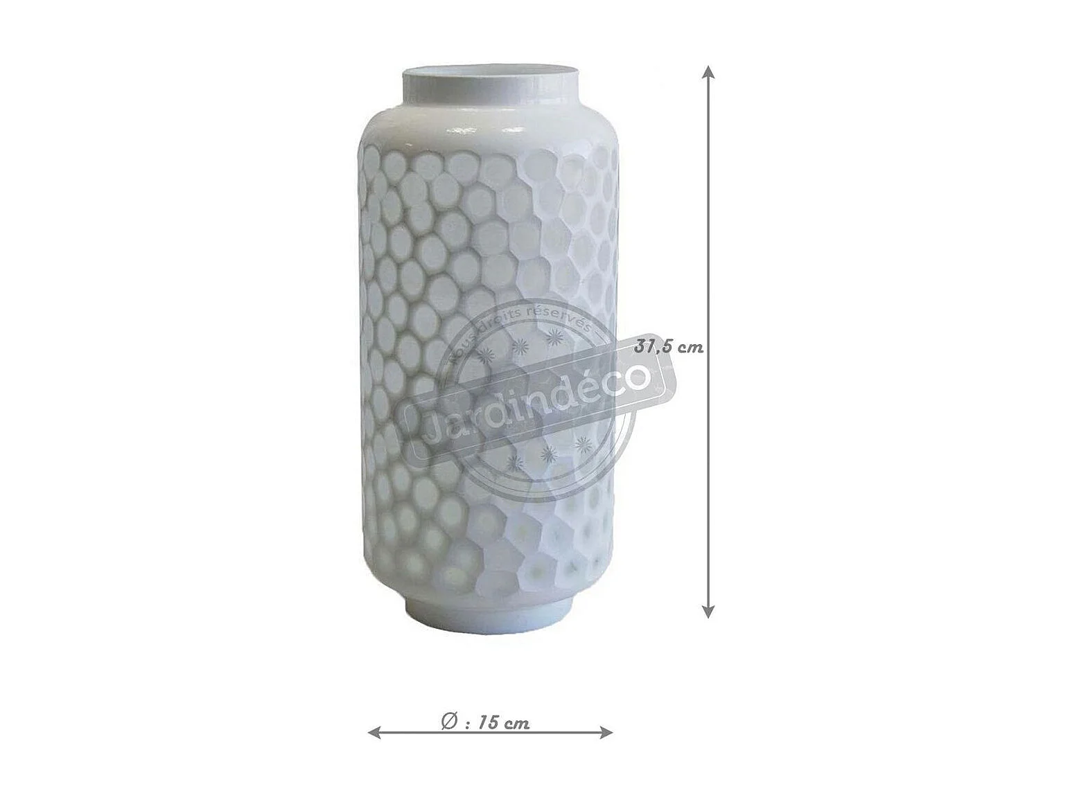 Vase en verre blanc motif nid d'abeille – Élégance nature 31,5 cm