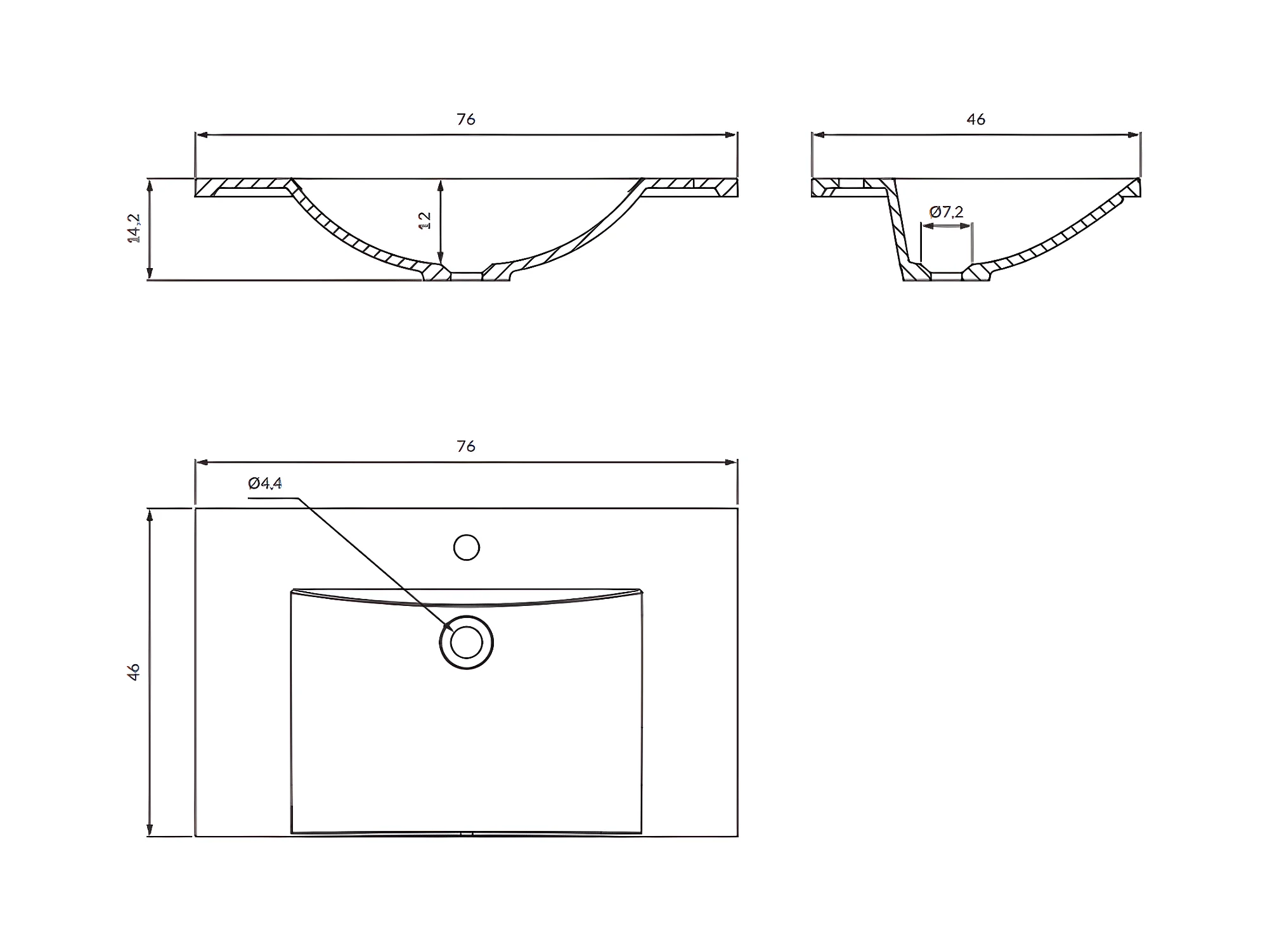 Vasque 76 x 46 cm blanc brillant bonde de vidage incluse