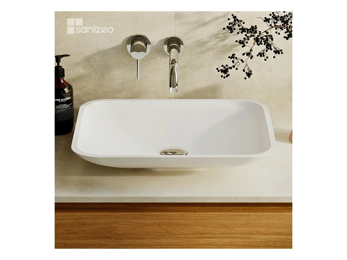 Vasque à poser ANJA - 75% Minéral Blanc Mat Rectangle 49.9*39.9cm*H9.2cm - LAVABERG