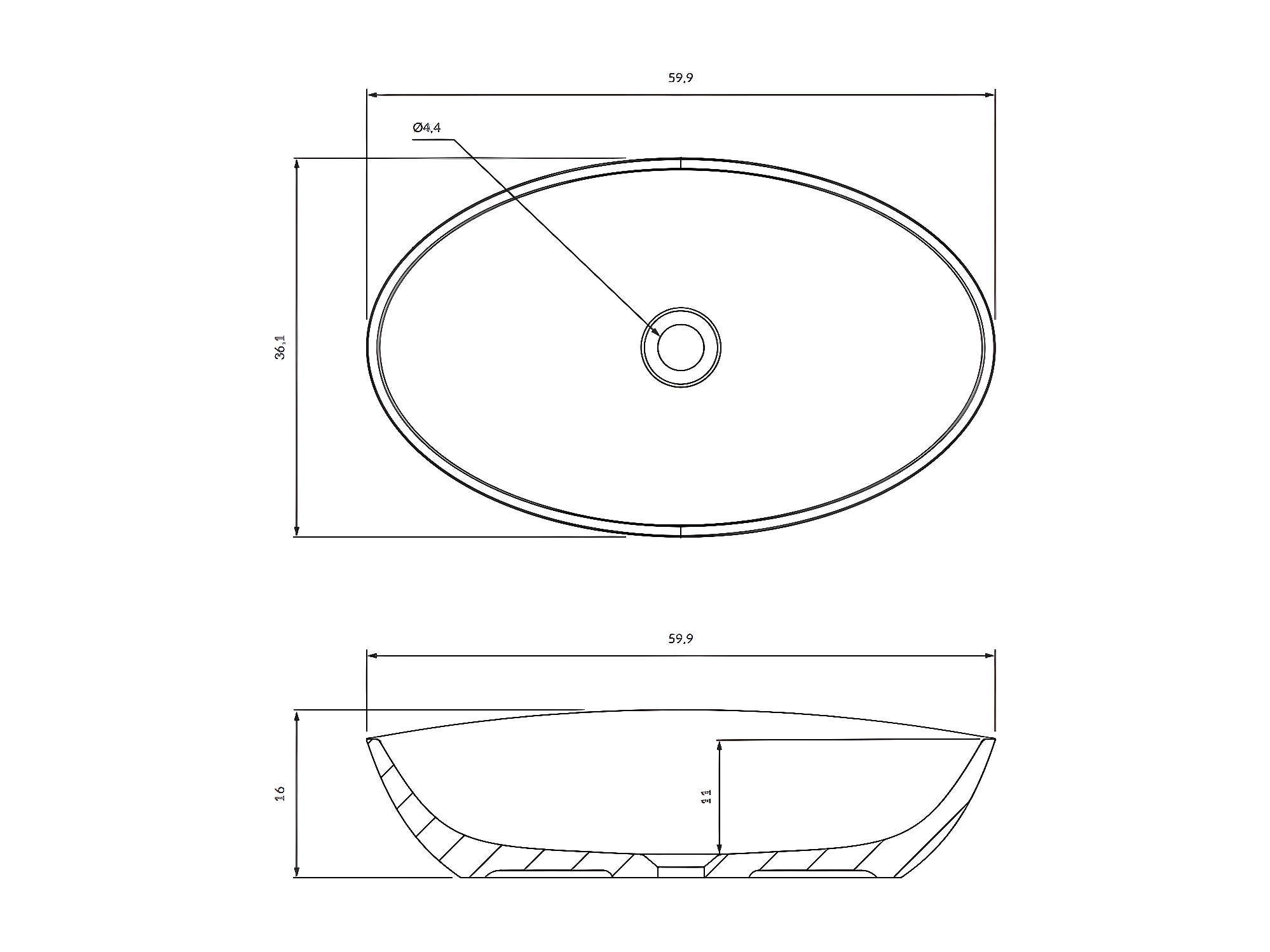 Vasque à poser BARCELONA 60 x 36 cm blanc brillant bonde de vidage blanche incluse