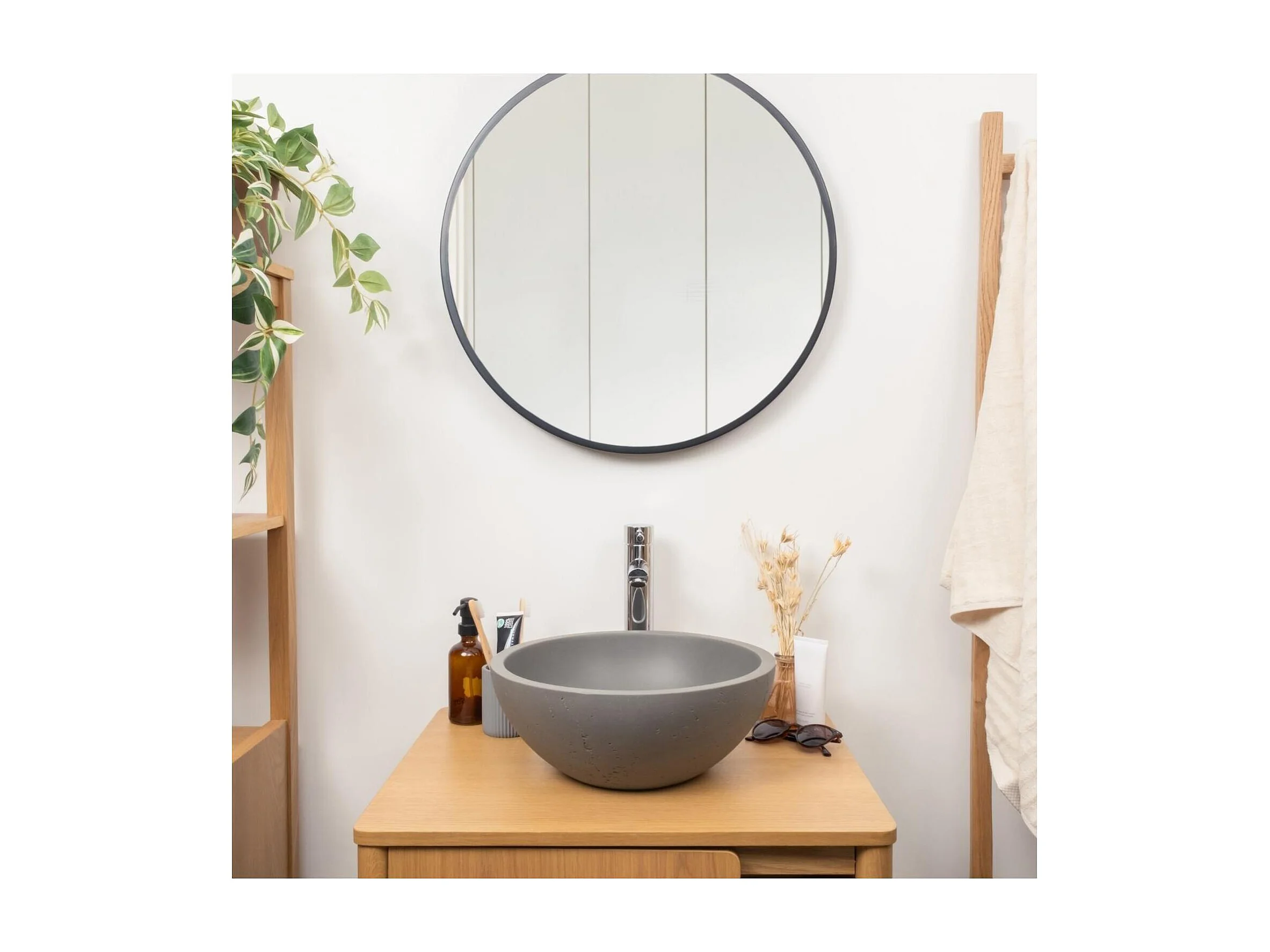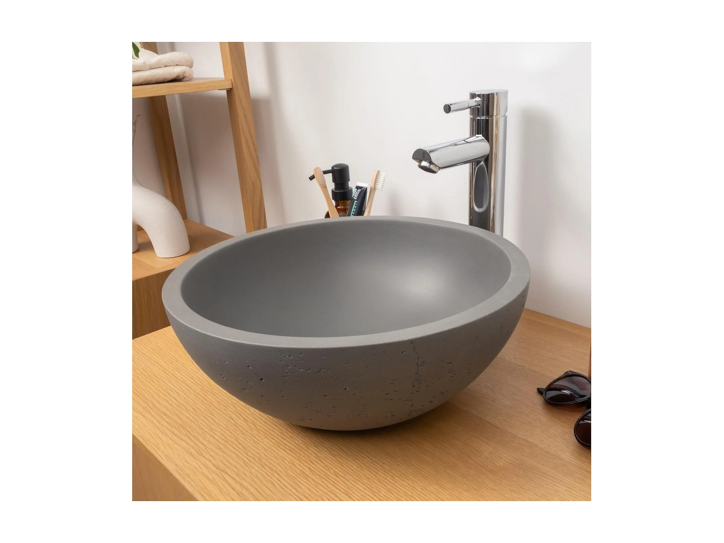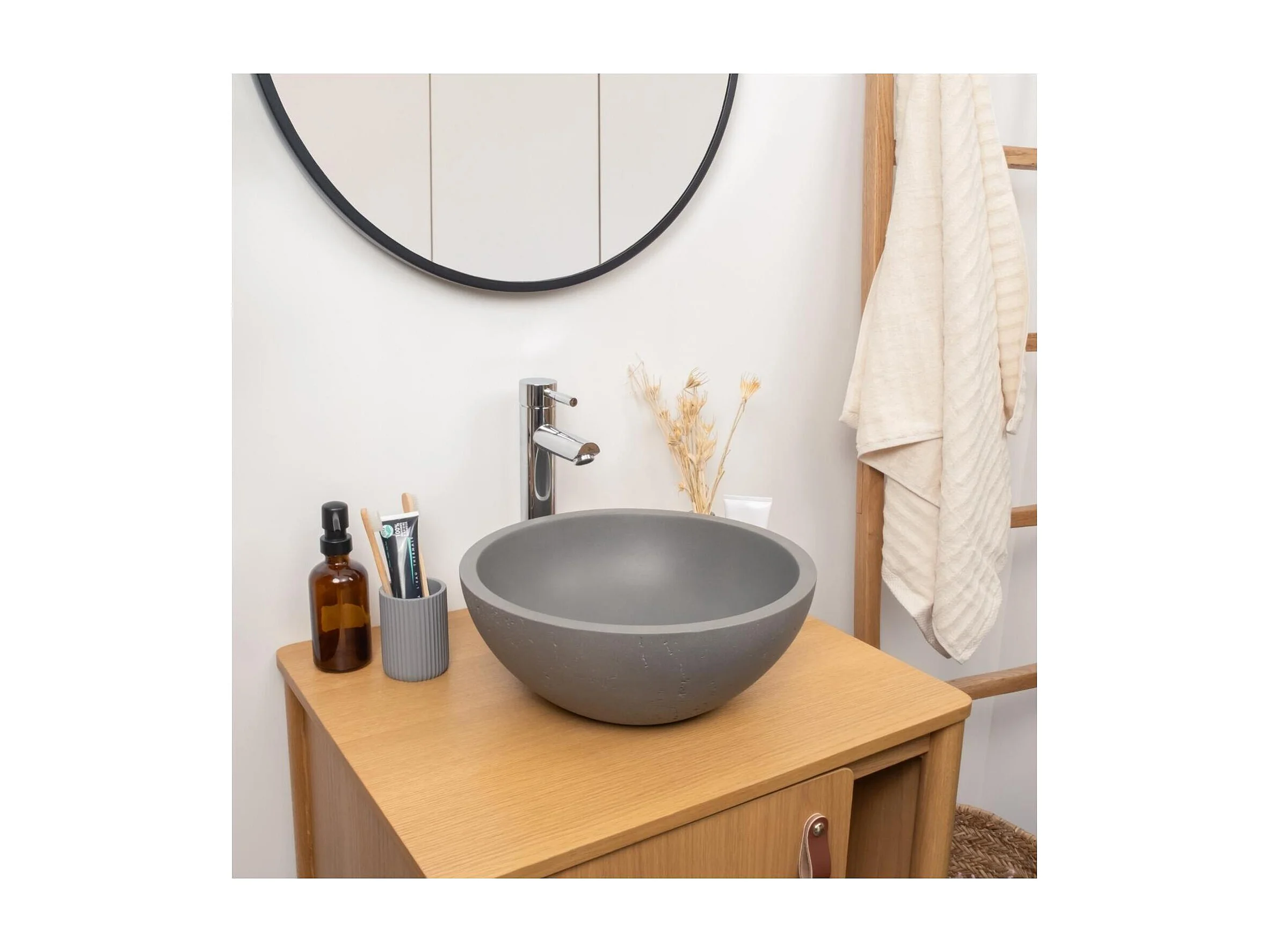 Vasque lave-mains à poser ronde en béton gris 26cm