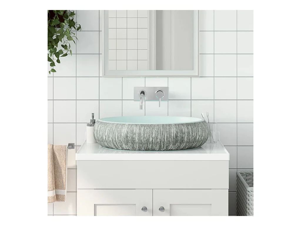 Vasque à poser gris et bleu ovale 59x40x15 cm céramique WVGQ7987