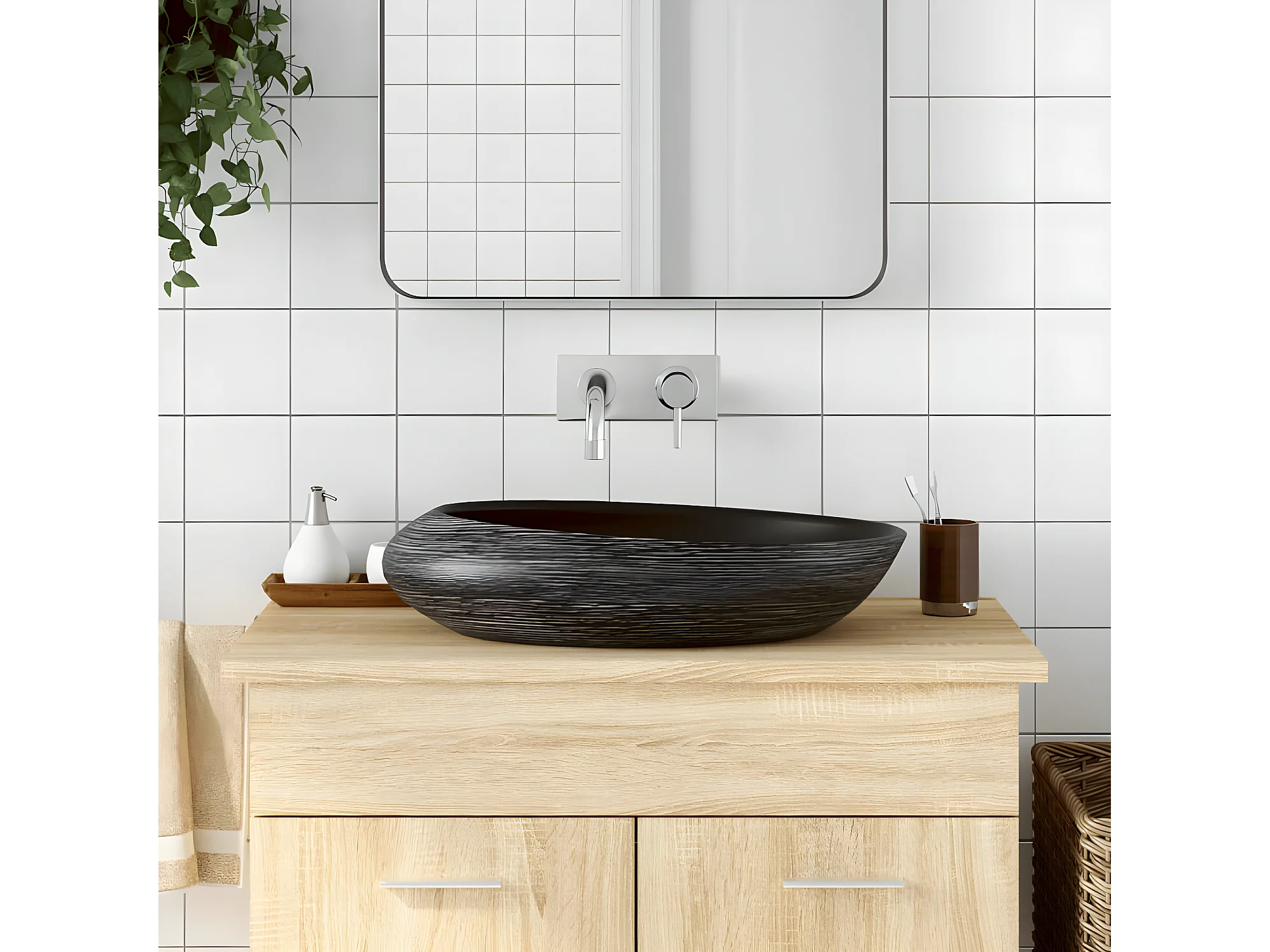 Vasque à poser gris et noir ovale 59x40x14 cm céramique WVGQ5108