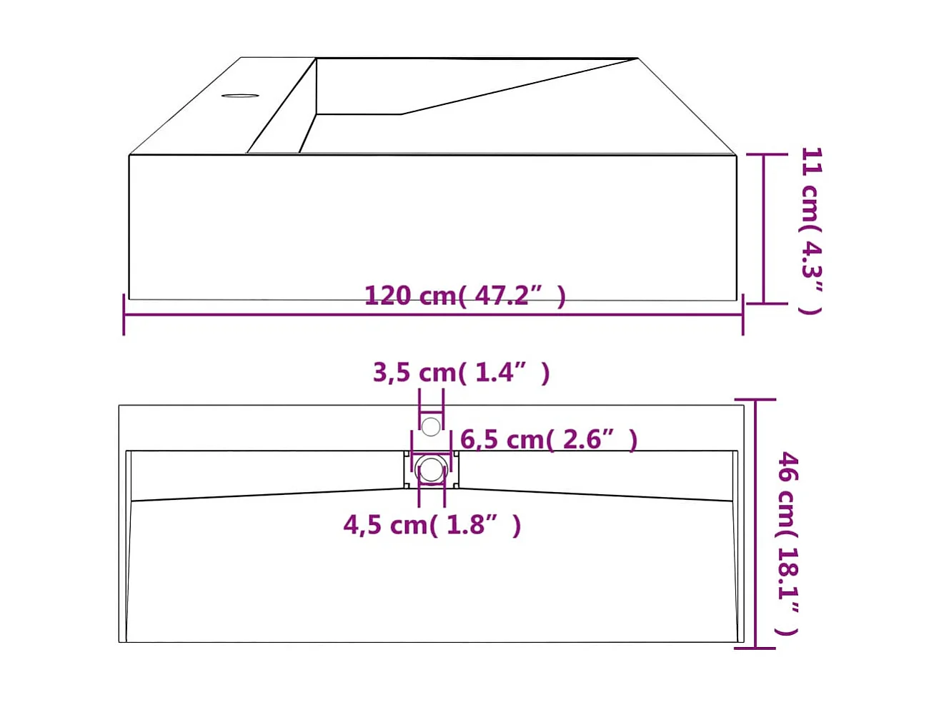 Vasque à poser Lavabo 120x46x11 cm fonte minérale/marbre noir mat