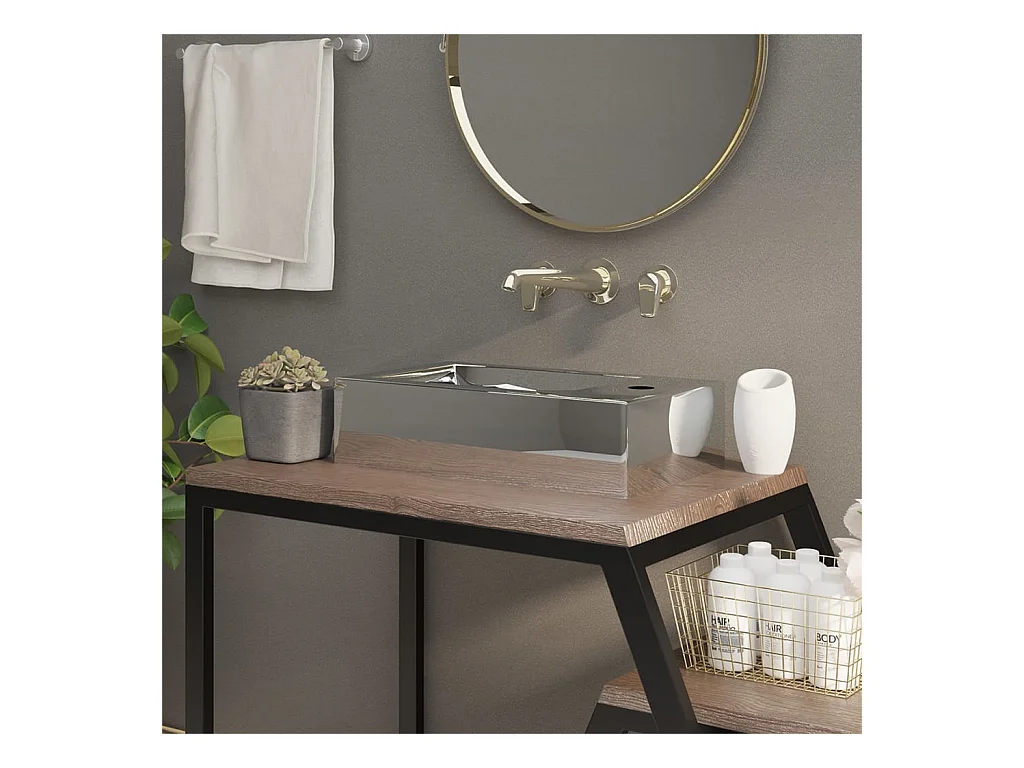 Vasque avec trop-plein 49 x 25 x 15 cm Céramique Argenté FR493297