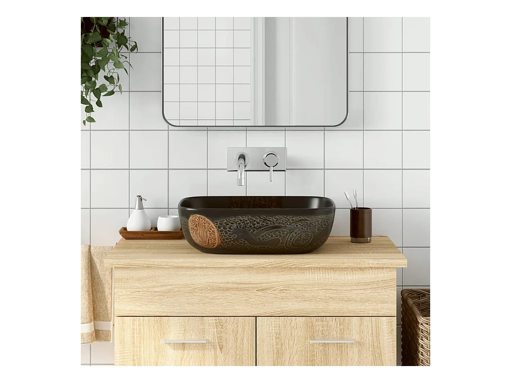 Vasque à poser Lavabo | Bac à laver noir rectangulaire 48x37,5x13,5 cm céramique