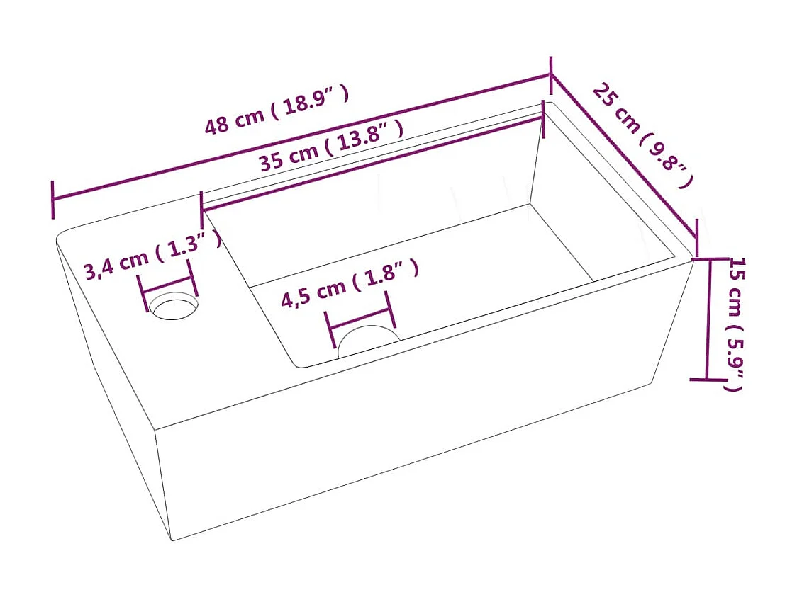 Lavabo blanc 48x25x15 cm céramique