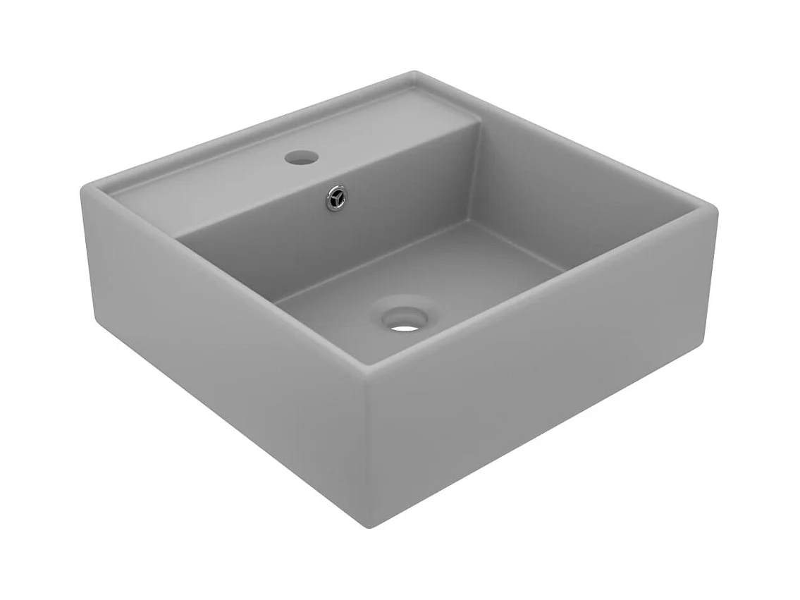 Vasque à poser-Lavabo carré à trop-plein Gris clair mat 41x41 cm Céramique
