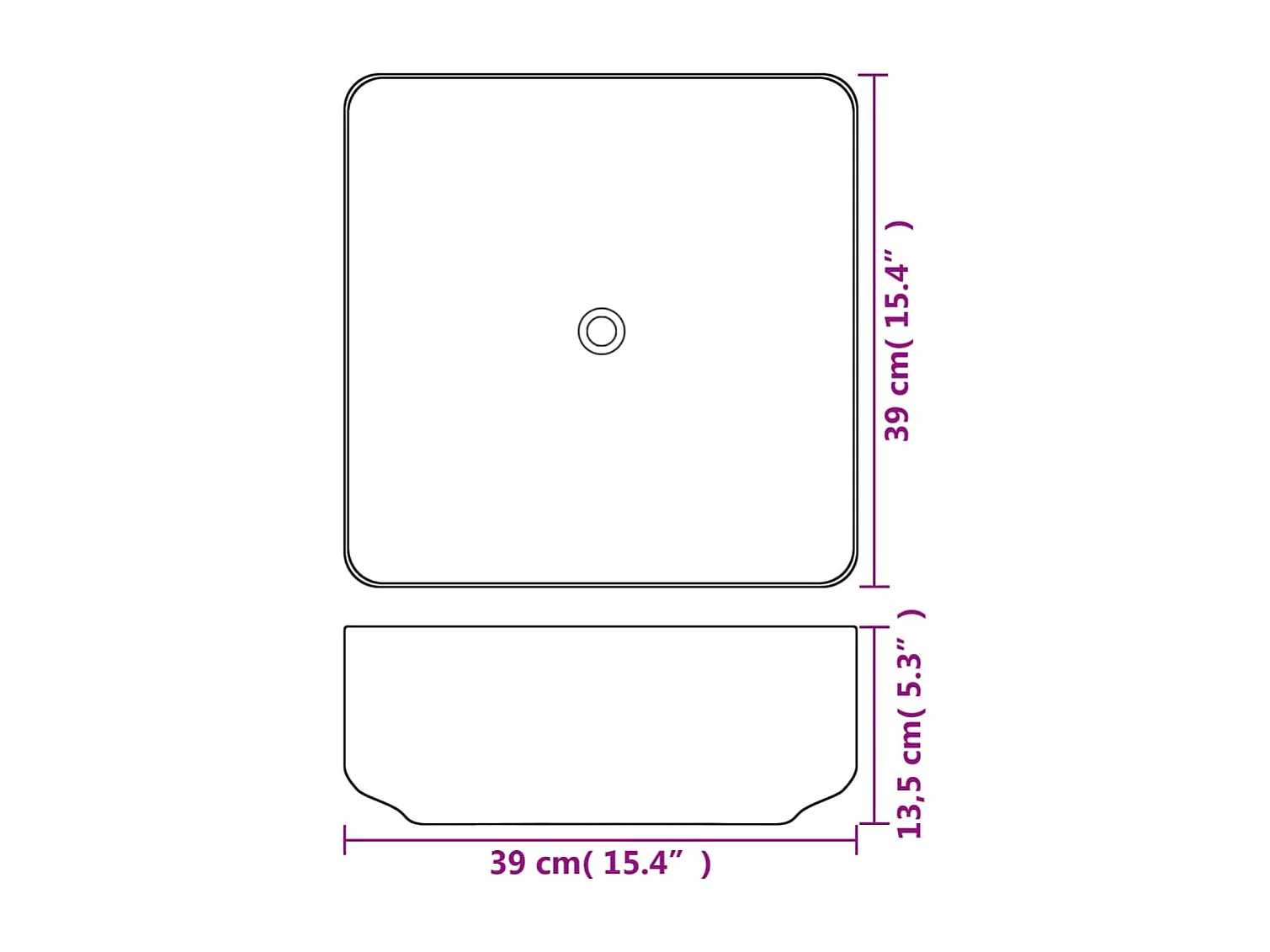 Vasque à poser-Lavabo carré Céramique Blanc 39x39x13,5 cm