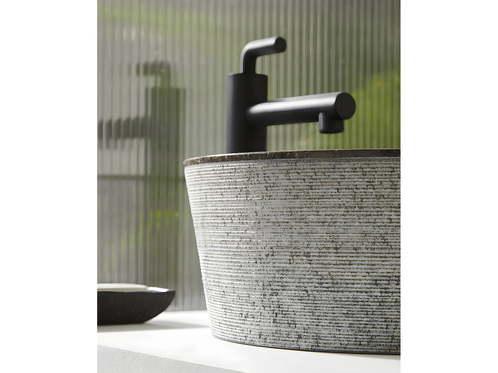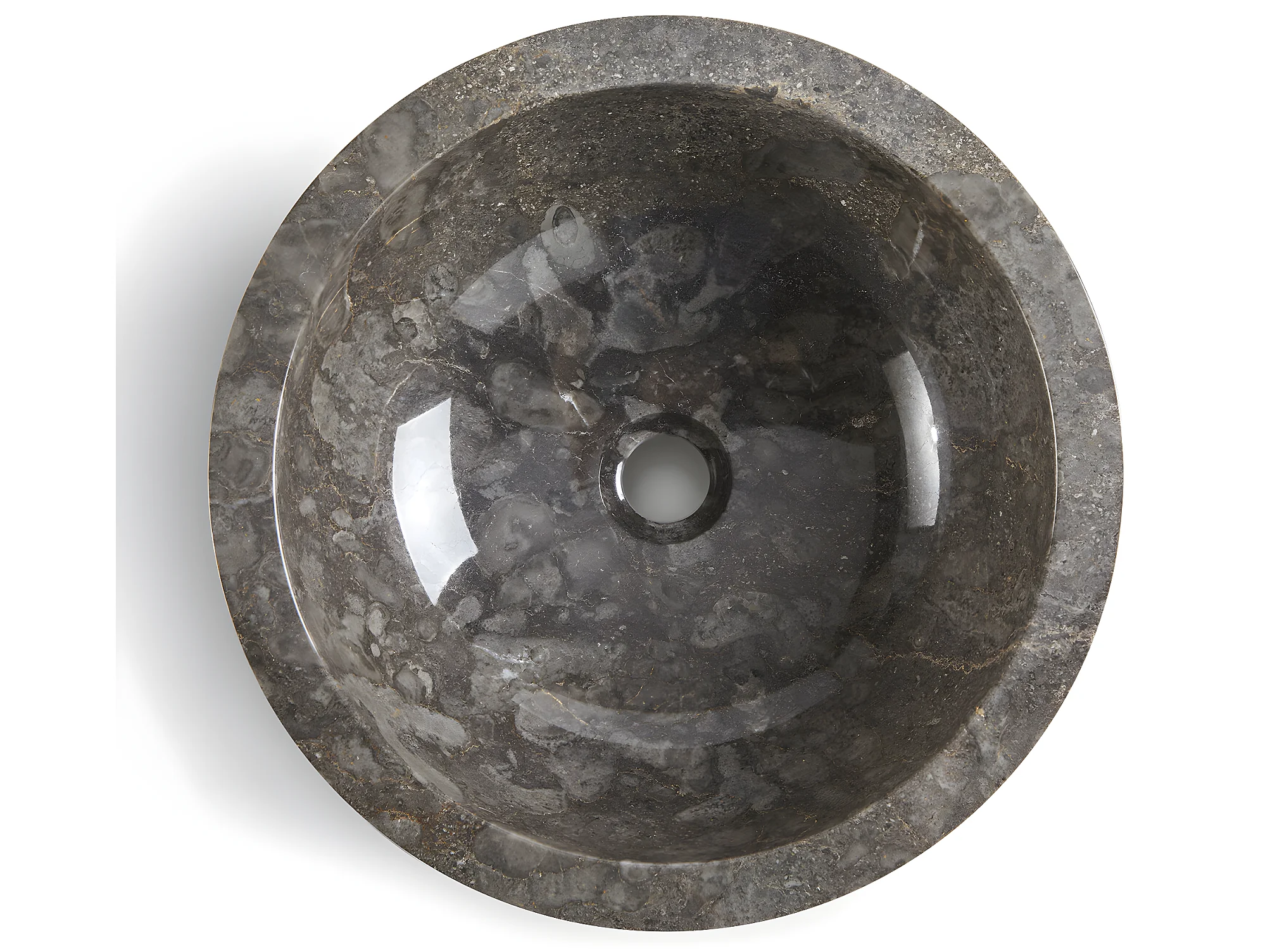Vasque à poser / lavabo en marbre coloris gris - Diamètre 40 x Hauteur 15 cm