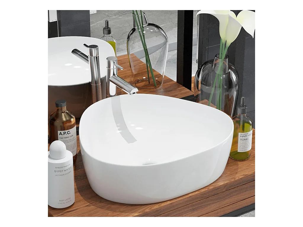 Lavabo salle de bain-Vasque à poser en porcelaine Blanc