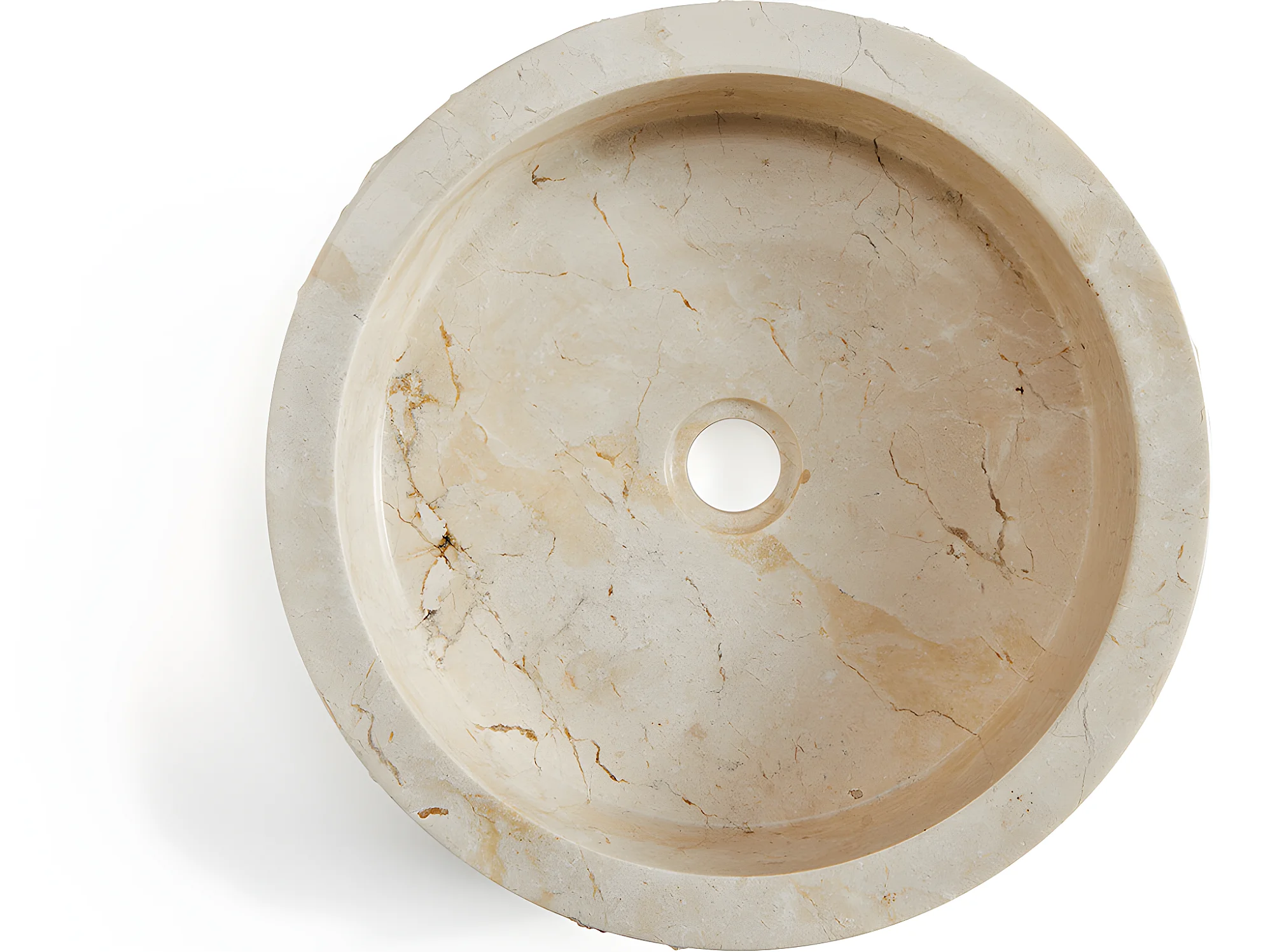 Vasque à poser / lavabo rond en marbre, coloris beige - Diamètre 40 x Hauteur 15 cm