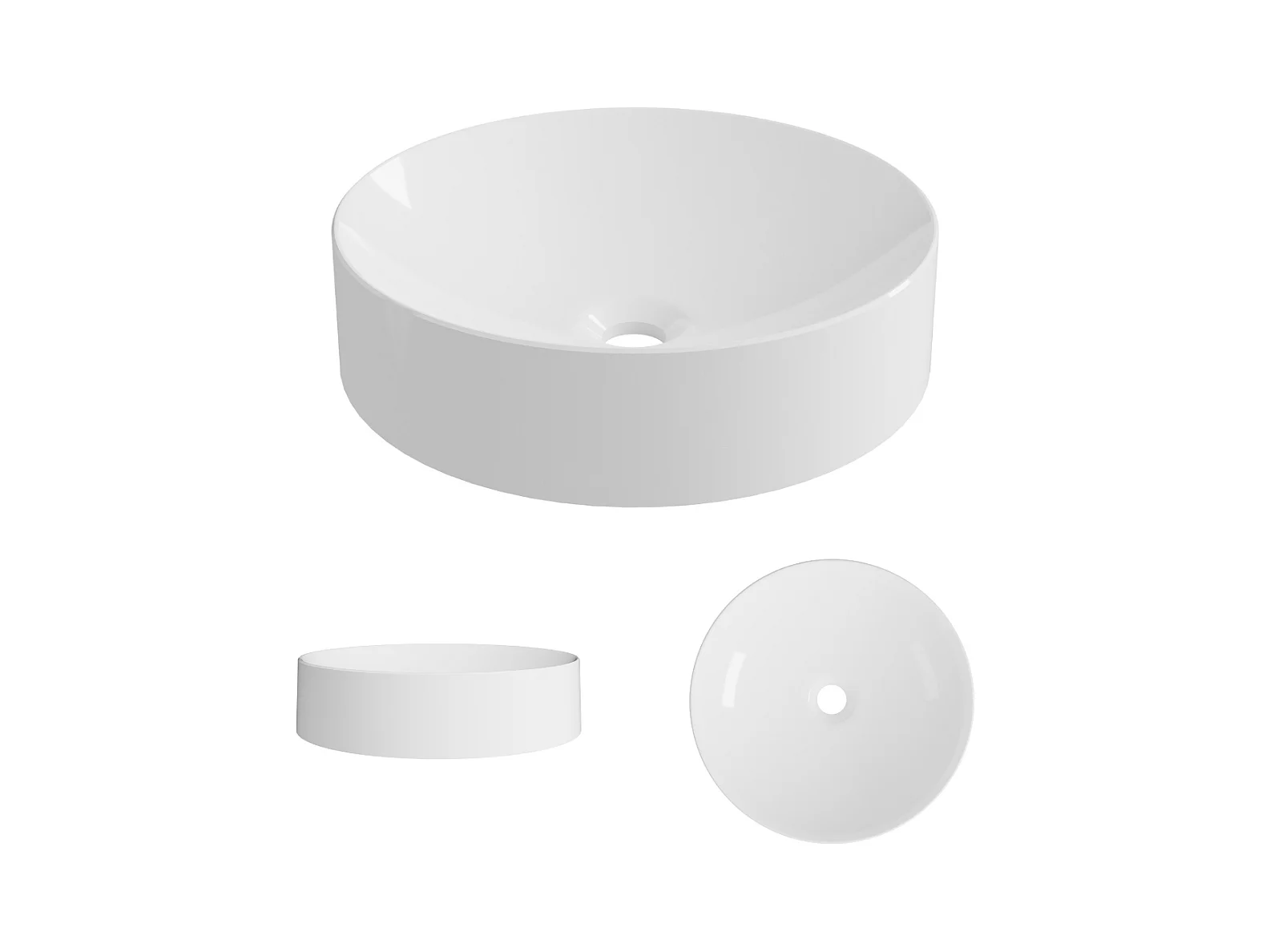 Vasque à poser OSCAR - 75% Minéral Blanc Brillant Ronde 40cm*H11.7cm - LAVABERG