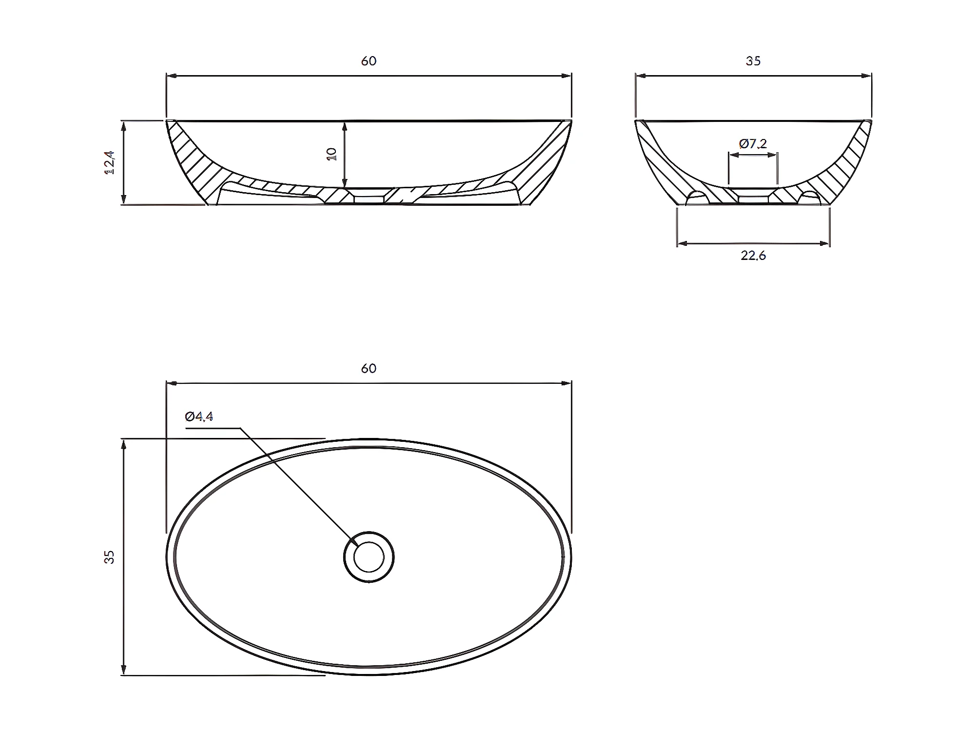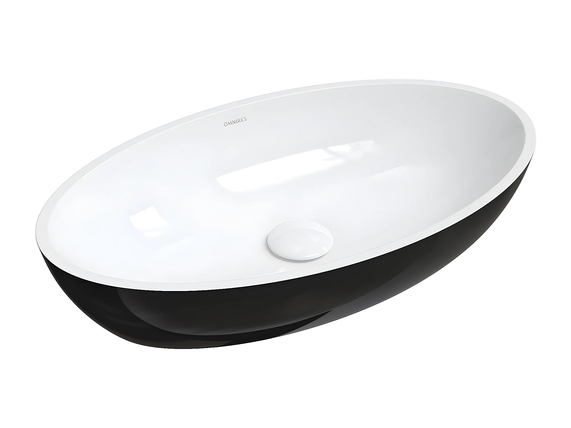 Vasque à poser SIENA 60 x 35 cm blanc/noir brillant bonde de vidage blanche incluse