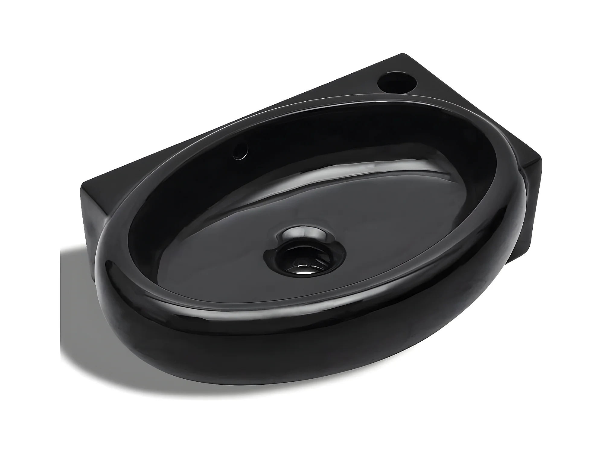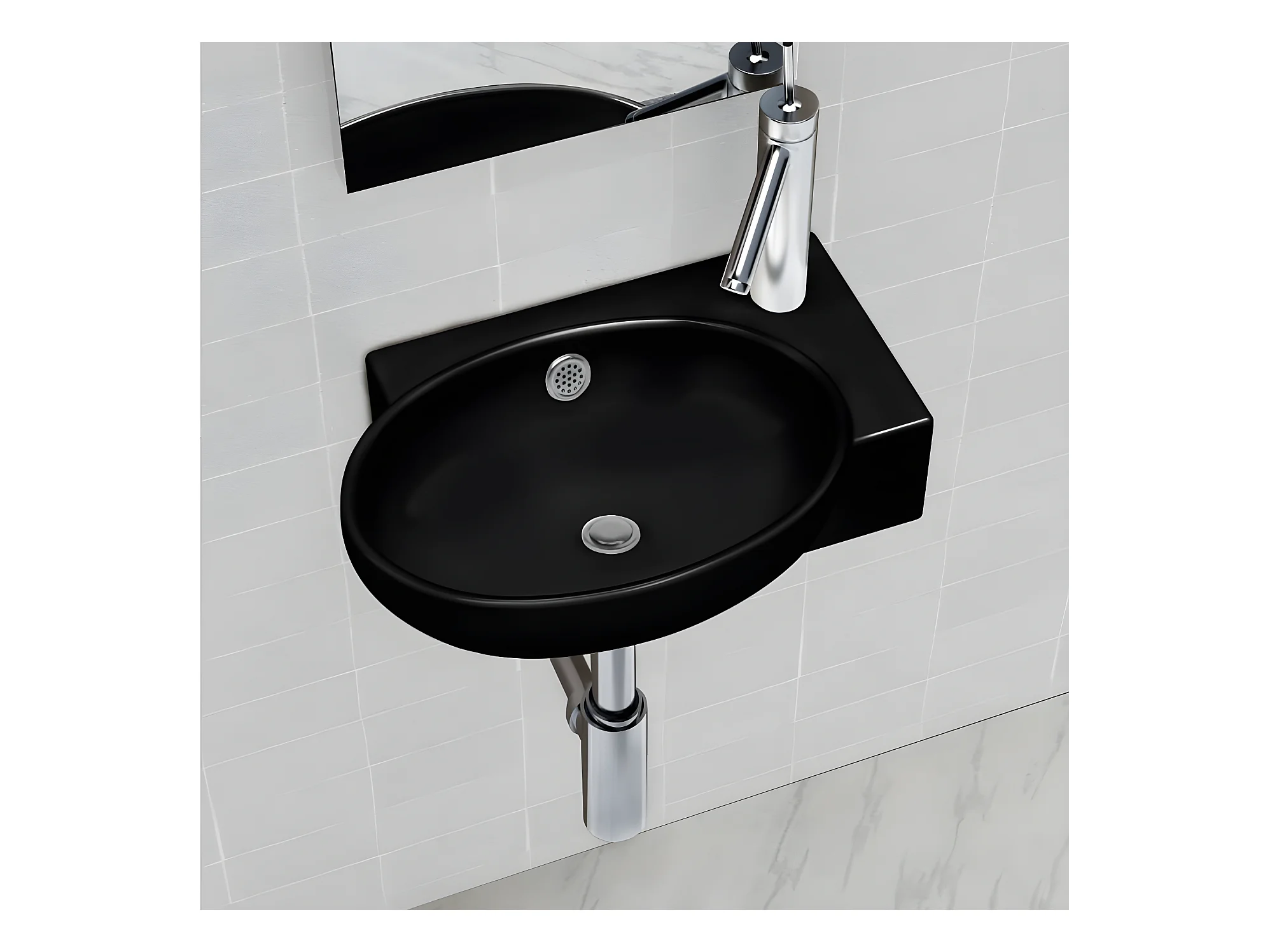 Vasque à trou de trop-plein/robinet céramique pour salle de bain Noir FR339935