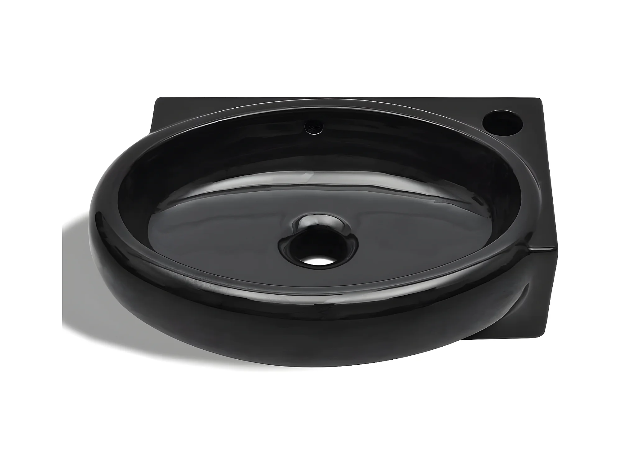 Vasque rectangulaire à trou Noir en céramique pour salle de bain FR378568