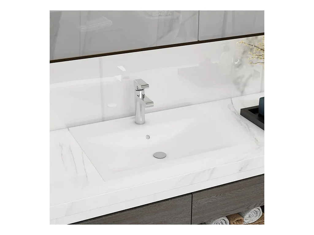 vasque rectangulaire blanche à encastrer en céramique - 80 x 46 cm - SKY