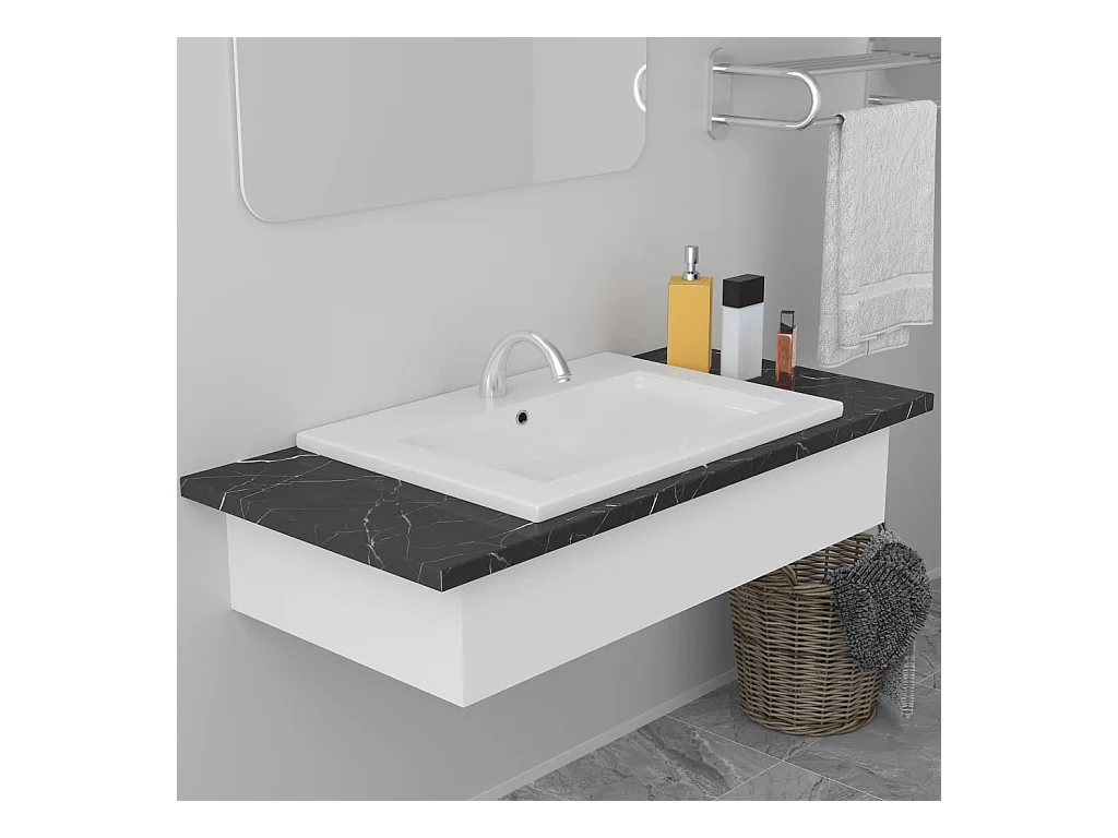 Vasque encastré avec robinet 61x39x18 cm Céramique Blanc WVGQ6453