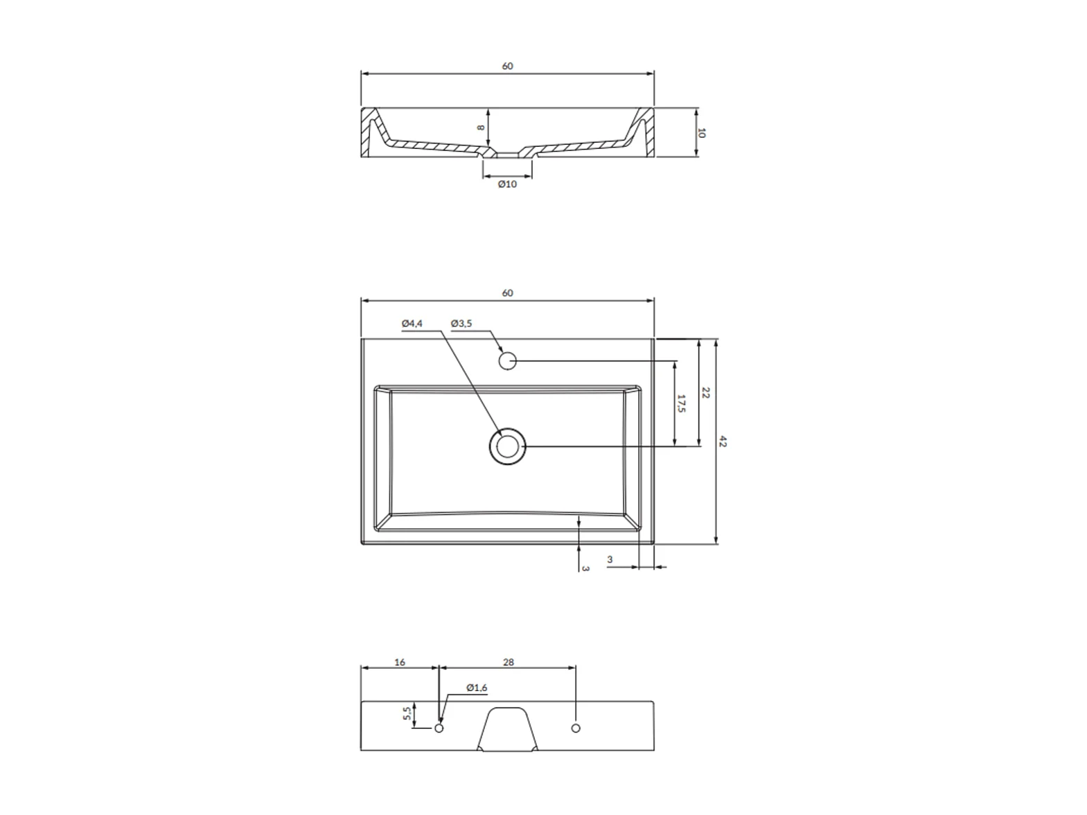 Vasque murale THASOS 60 x 42 cm blanc brillant bonde de vidage incluse