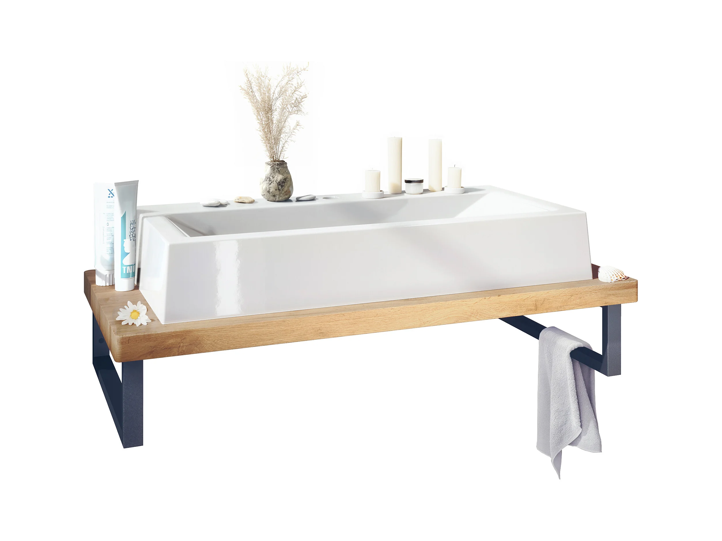 Vasque Nizza avec plateau de lavabo de couleur Chêne Wotan et support de lavabo en métal noir (95 x 31,4 x 51 cm)