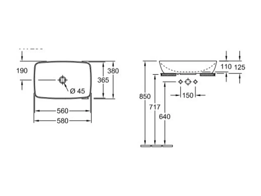 Vasque rectangle à poser VILLEROY ET BOCH Artis blanc ceramicplus