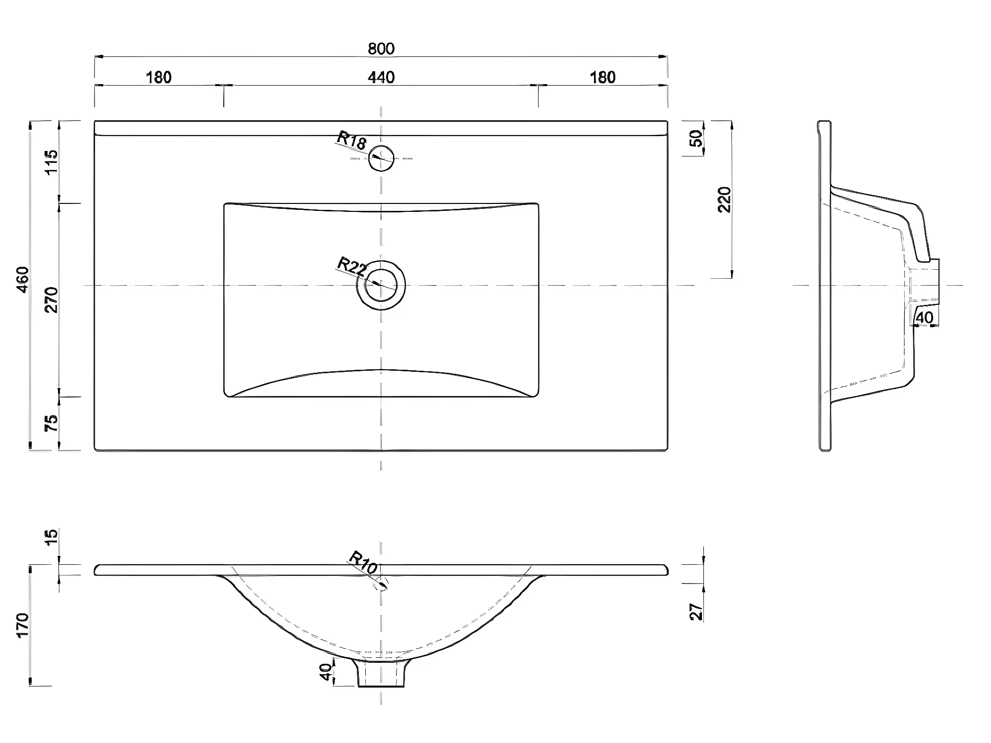 vasque rectangulaire noir à encastrer en céramique - 80 x 46 cm - LAVA