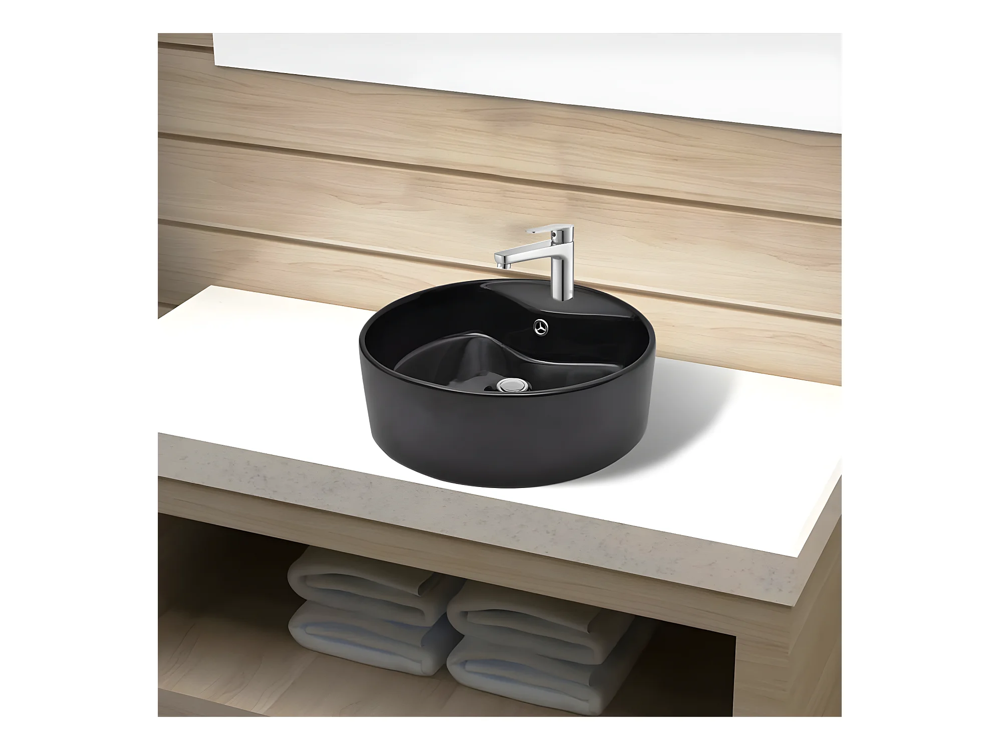 Vasque à trou de trop-plein/robinet céramique pour salle de bain Noir FR339935