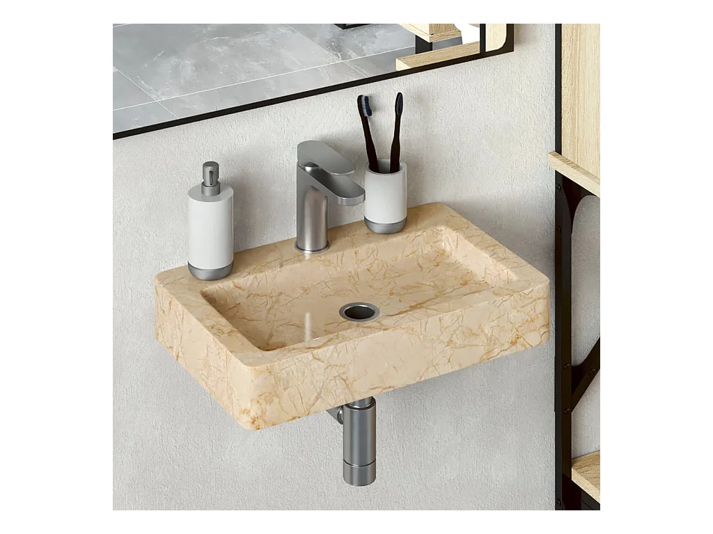 Vasque suspendue crème 38x24x6,5 cm marbre WVGQ5193