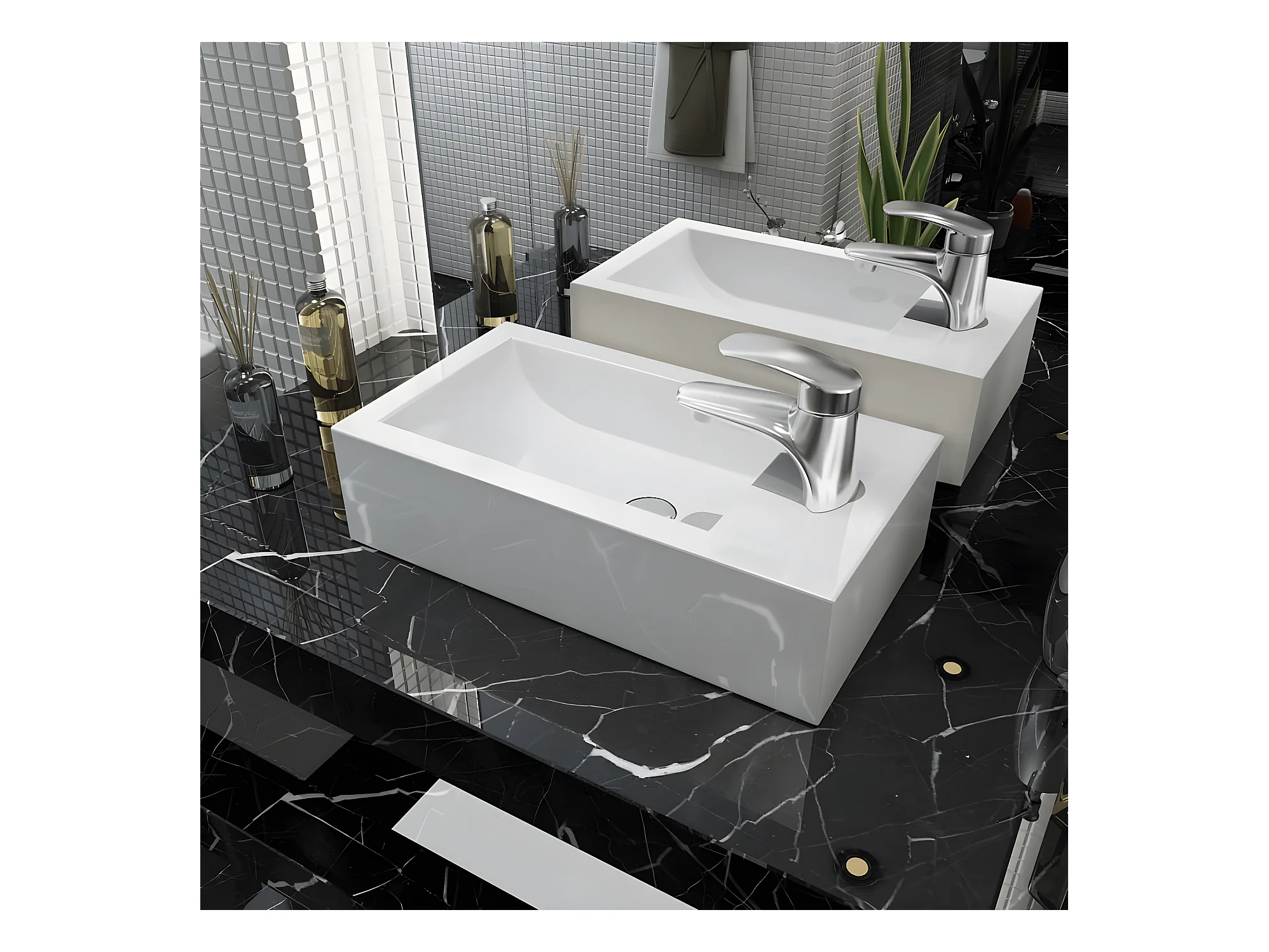 Lavabo de salle de bain rectangulaire en céramique arrondi 46x32 cm