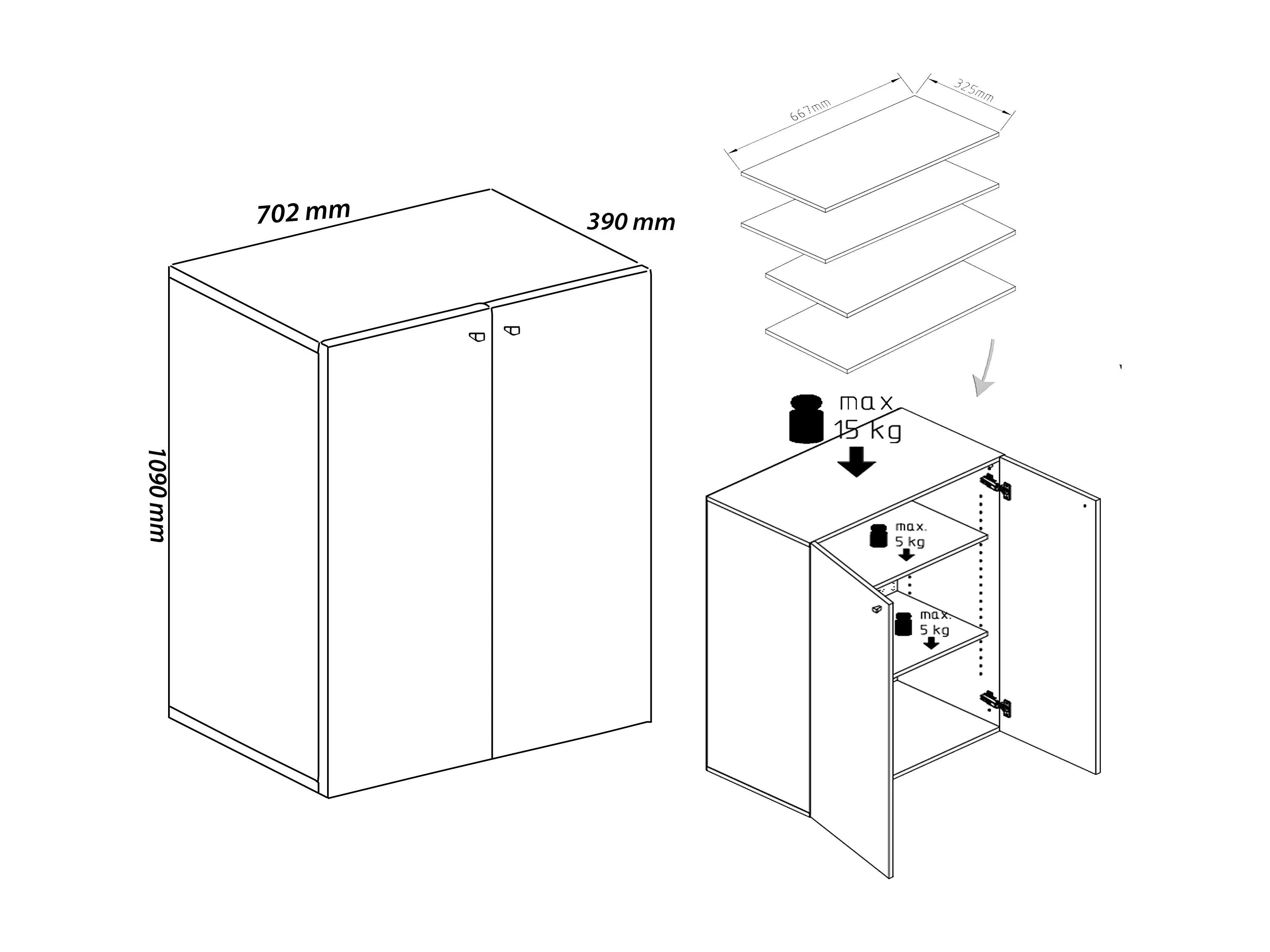 Shoe cabinet Lona White / Sonoma oak H. 110 x W. 70 x D. 39 cm